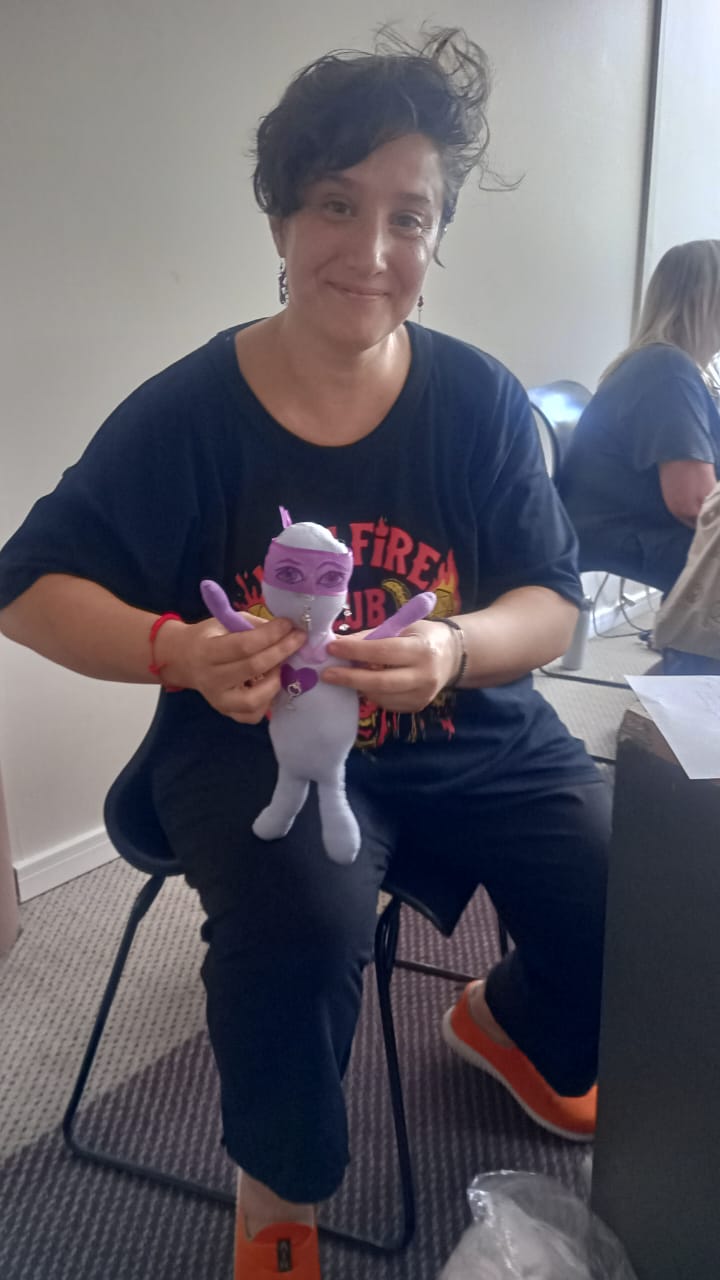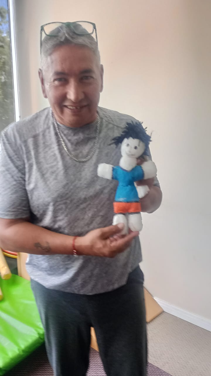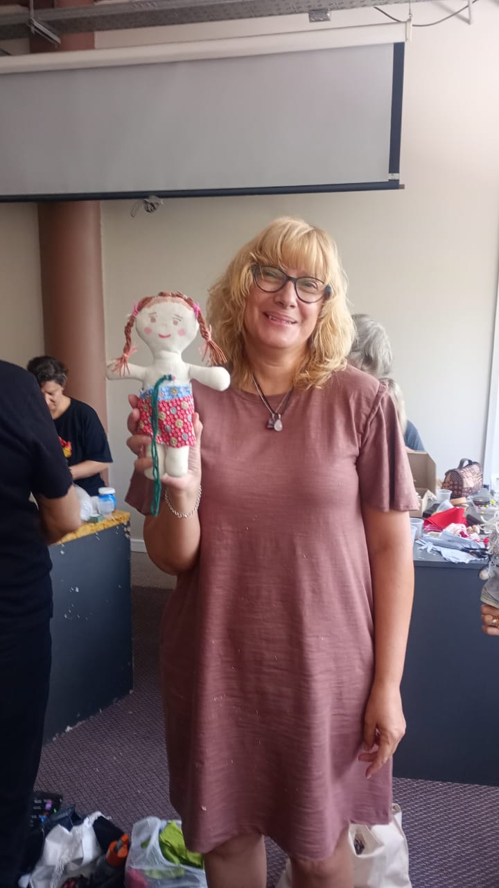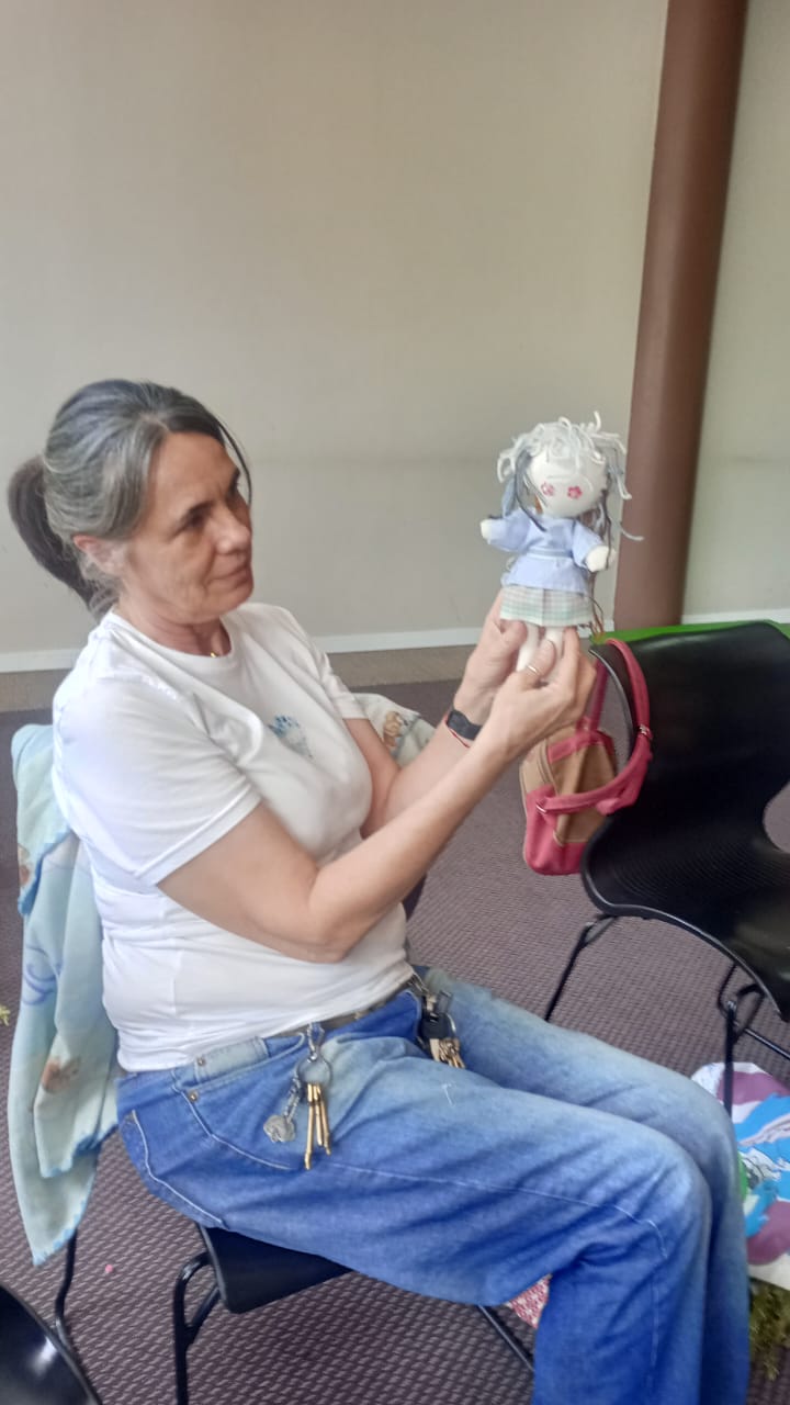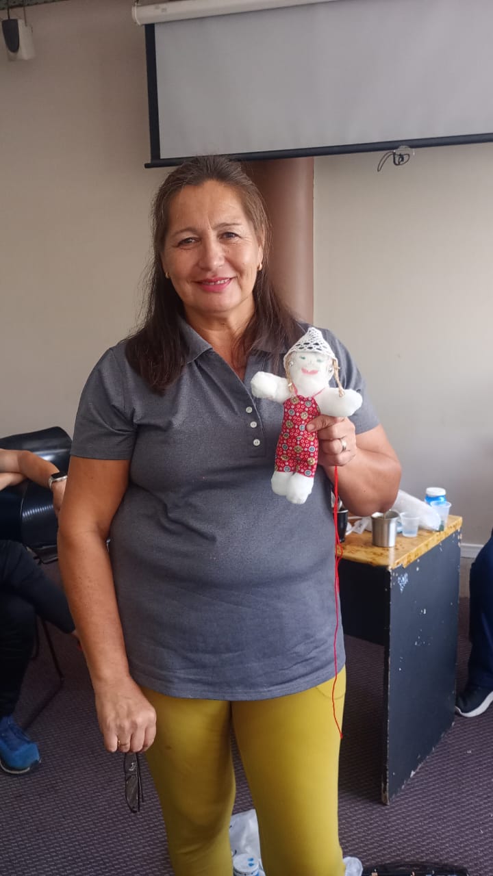 En esta oportunidad, la actividad consistió en la creación de muñecos de producción propia, con el objetivo de conectar con el niño interior de cada participante. La resiliencia que comparten, atravesada por los distintos tratamientos que realizan, permitió que esta propuesta se convirtiera en un momento para recrear la niñez, reconciliarse con esa etapa y sanar viejas heridas.