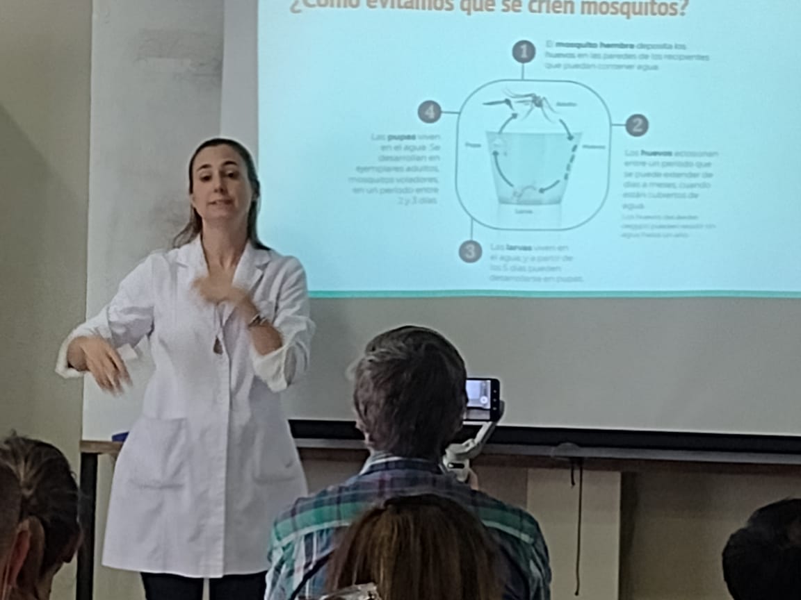 Profesionales del Hospital El Carmen asistieron a una jornada de capacitación en el Salón de Usos Múltiples del nosocomio, donde la doctora Felicitas Fernández, especialista del Servicio de Infectología, brindó una disertación sobre el dengue.