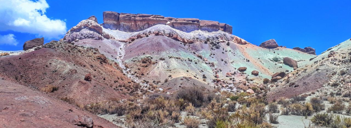 El primer desafío fue en la zona sureste de Uspallata, donde hay una montaña que se impone por sus colores, semejante al famoso cerro de Humahuaca, Jujuy. Esta formación también lleva el nombre de Cerro 7 Colores, una verdadera postal del Valle de Uspallata.