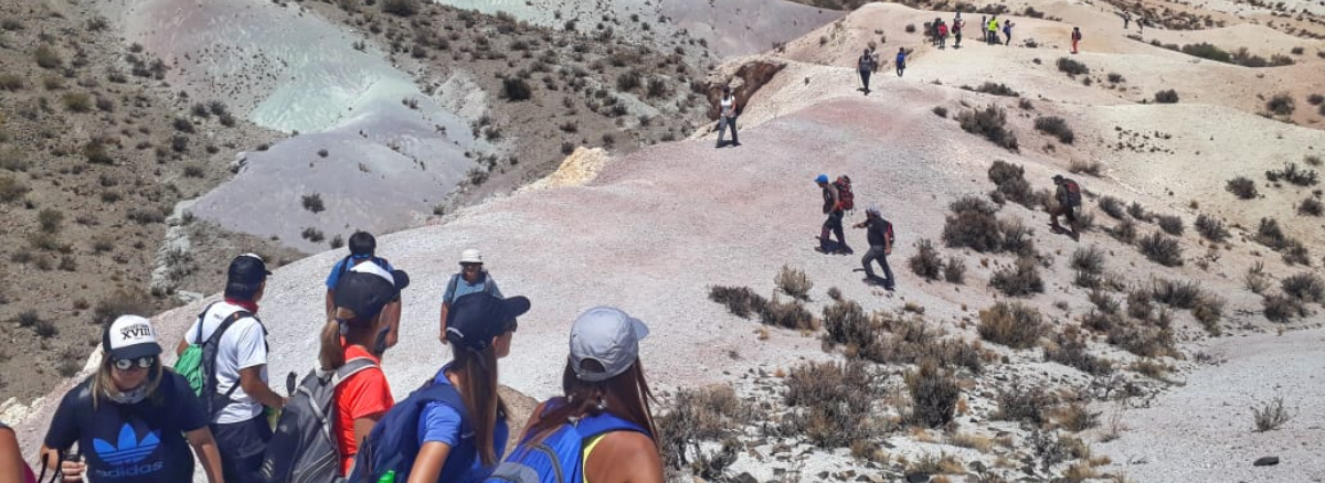 Más de 30 trabajadores de la Obra Social realizaron una nueva aventura de trekking por los cerros Siete Colores y Tunduqueral, en Uspallata.