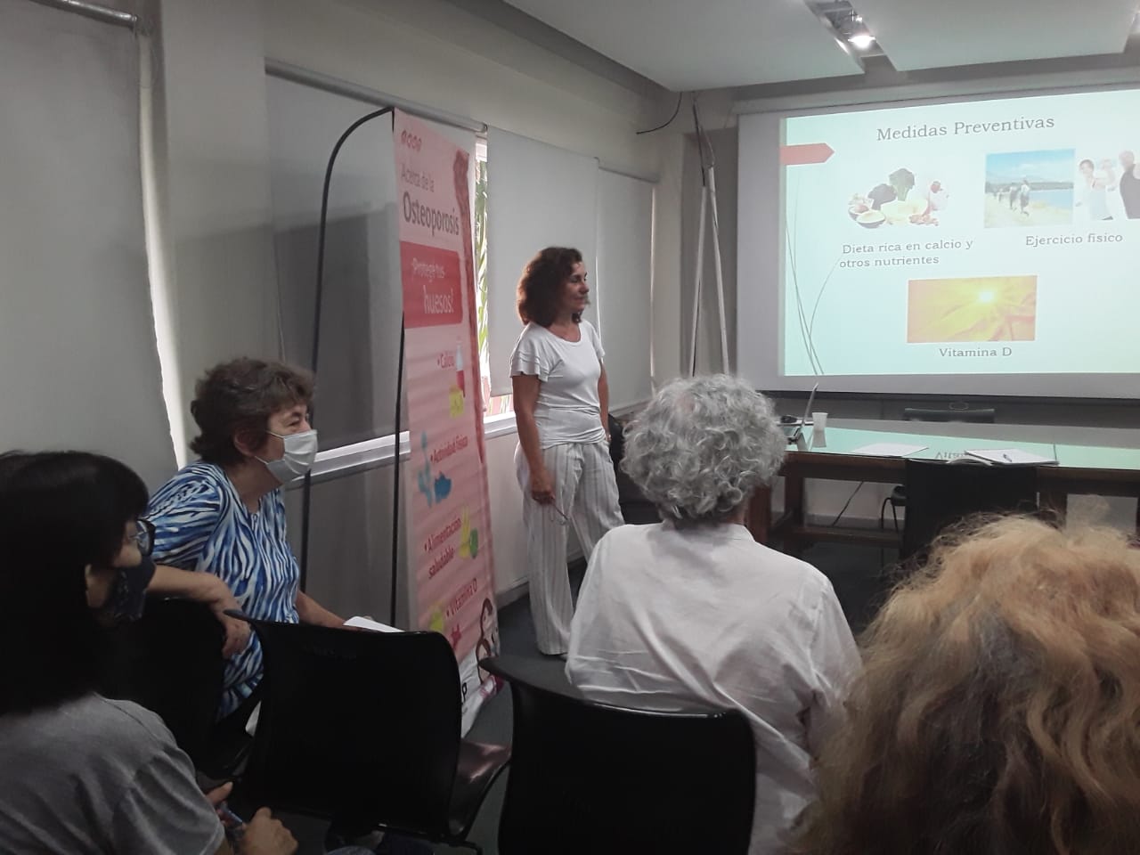 Esta semana las actividades comenzaron el lunes, cuando la doctora Andrea Conforti y la licenciada Paola Navarro brindaron un taller de Osteoporosis en el edificio Hunuc Huar, Chile 768 de Ciudad y por la plataforma Zoom para quienes no pudieron concurrir en forma presencial.