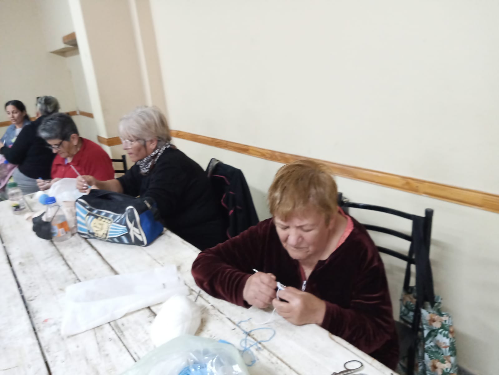 Un grupo de adultos mayores que asisten a los talleres que se brindan en OSEP Lavalle se reunió en los salones Marcelo Motta, de la Villa Tulumaya y Heriberto Devoto, de Costa de Araujo para tejer escarapelas que serán repartidas en los festejos departamentales, en conmemoración del 25 de Mayo, Día de la Patria.