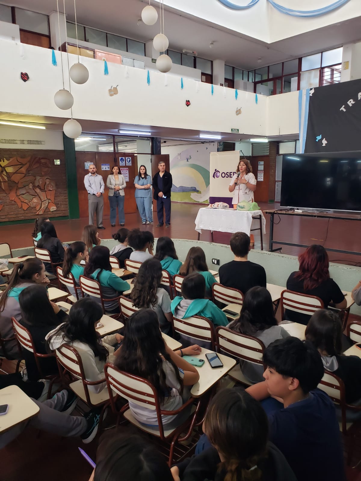 Profesionales de OSEP compartieron una jornada informativa con las alumnas de la Escuela 4-004 Mercedes Álvarez de Segura (EBYMA) de San Rafael. El objetivo de la visita fue ofrecer una charla sobre Educación Sexual Integral (ESI) y autocuidado para la detección precoz del cáncer de mama.