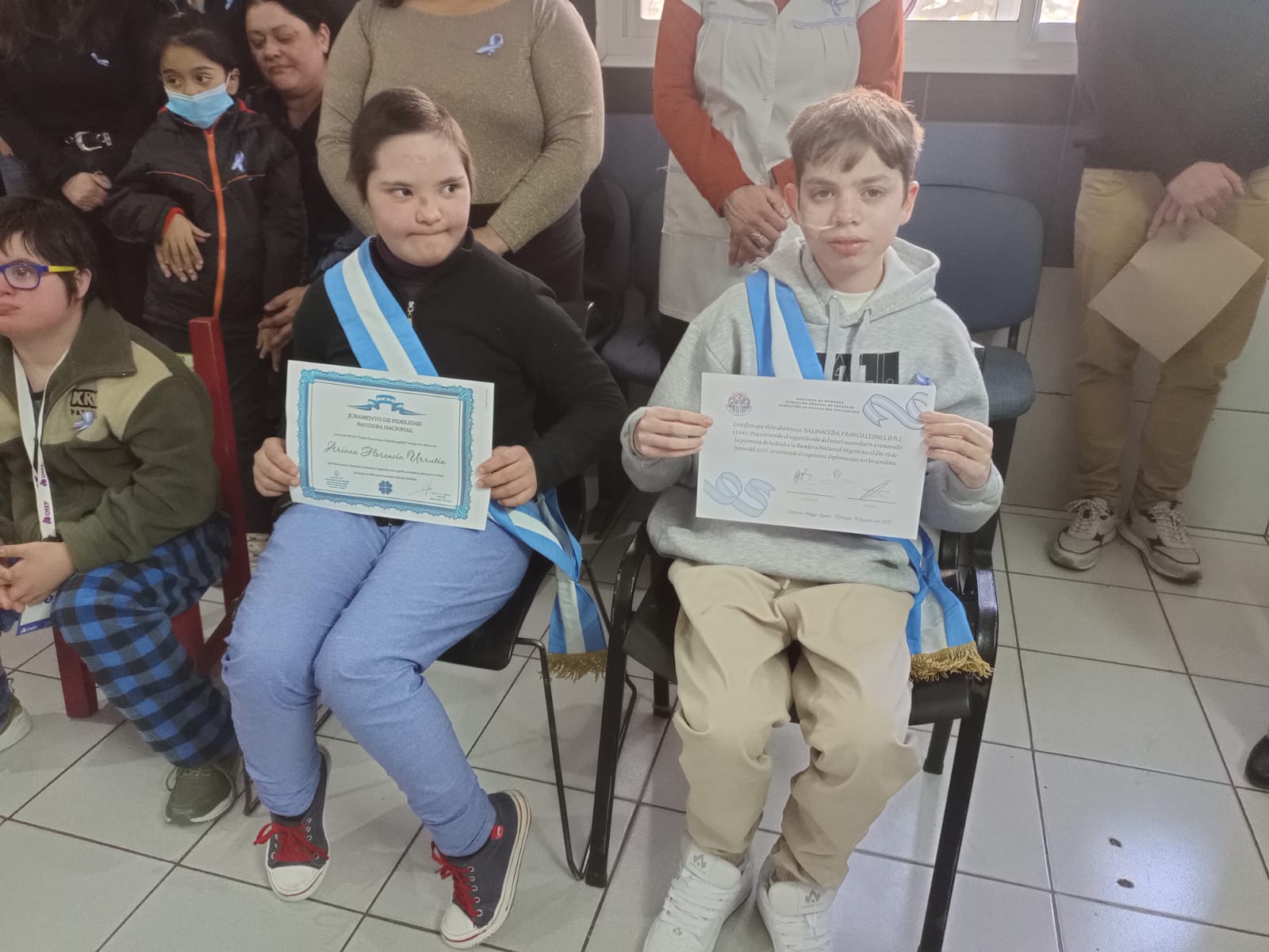 Franco Balmaceda, alumno de 2º 1º, de la Escuela Nº 4-231 “Prof. Alberto Chalar”, de Lavalle y Florencia Urrutia, de 2º año, de la Escuela PS 127 “Centro Comunitario Rural Evangélico” de Malargüe, representan la esperanza de la Patria. Estos jóvenes, quienes transitan su infancia cuna de valores, son los futuros hombres y mujeres encargados de guiar la nación. La significativa reafirmación de su compromiso con la insignia patria fue acompañada por los alumnos del aula hospitalaria.