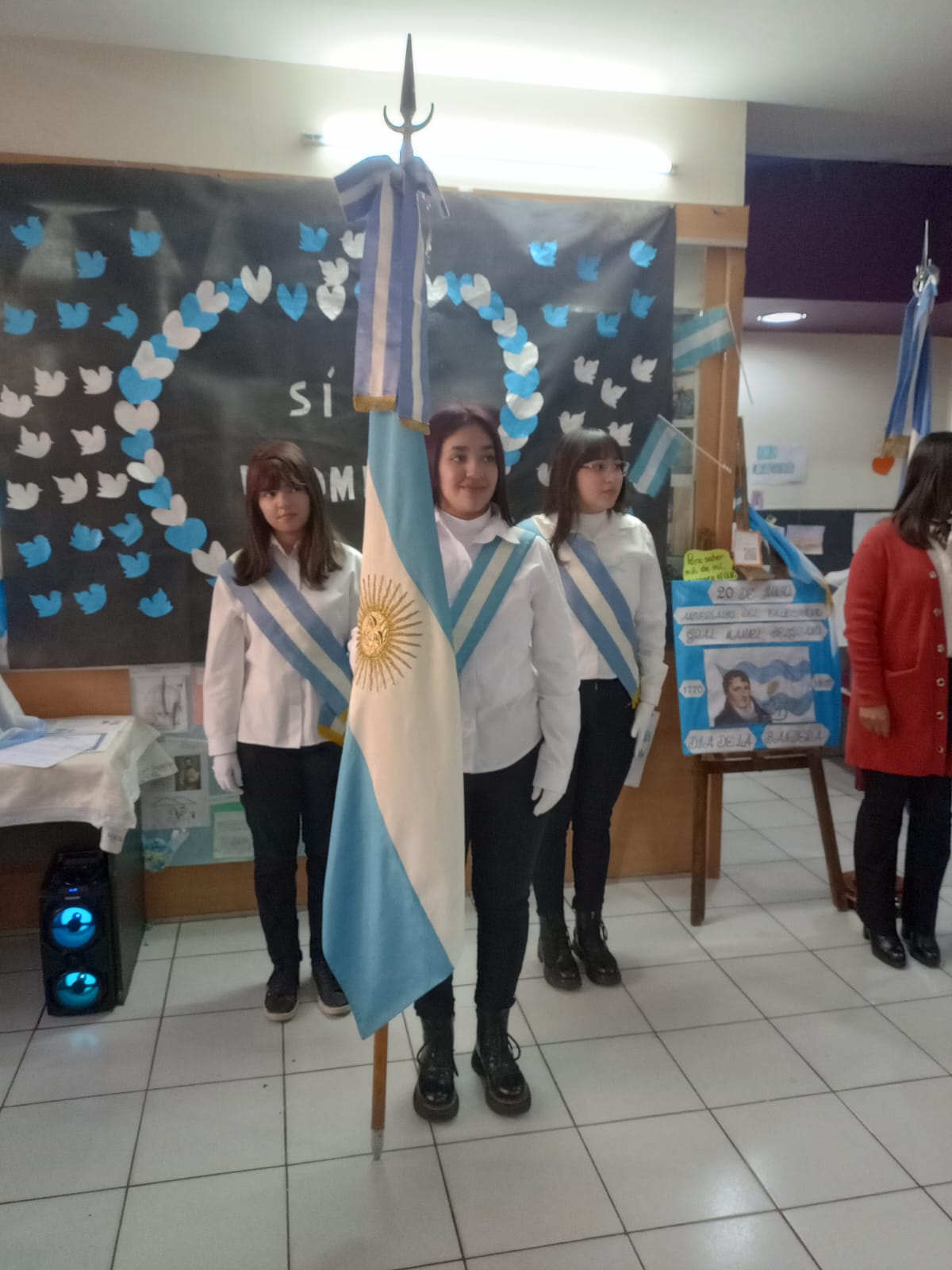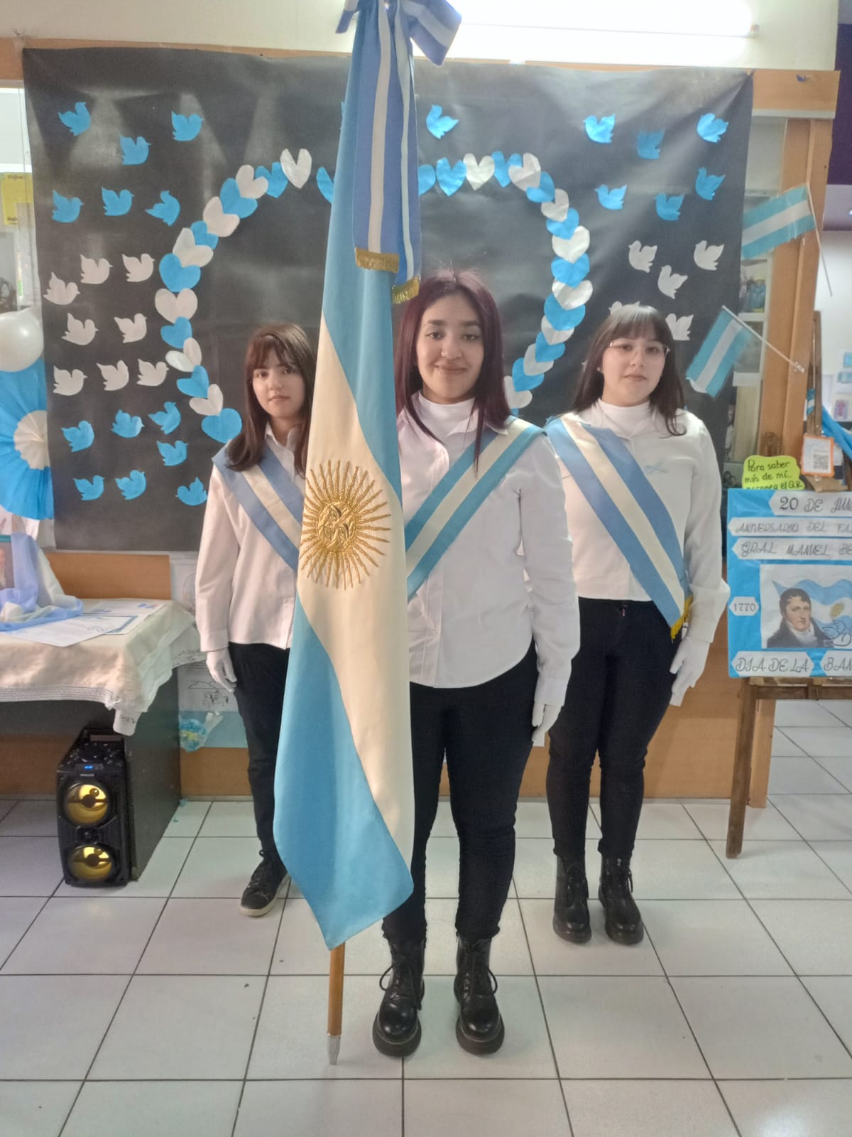 La Bandera de Ceremonias de la Escuela 4-036 Raúl Scalabrini Ortiz engalanó el acto, portada con orgullo por la Abanderada Nacional, Romina Abigail Moyano, y sus escoltas Ayelén Nerea Rosales Velázquez (Primera Escolta Nacional) y Delfina Milagros Herrera Muñoz (Segunda Escolta Nacional).