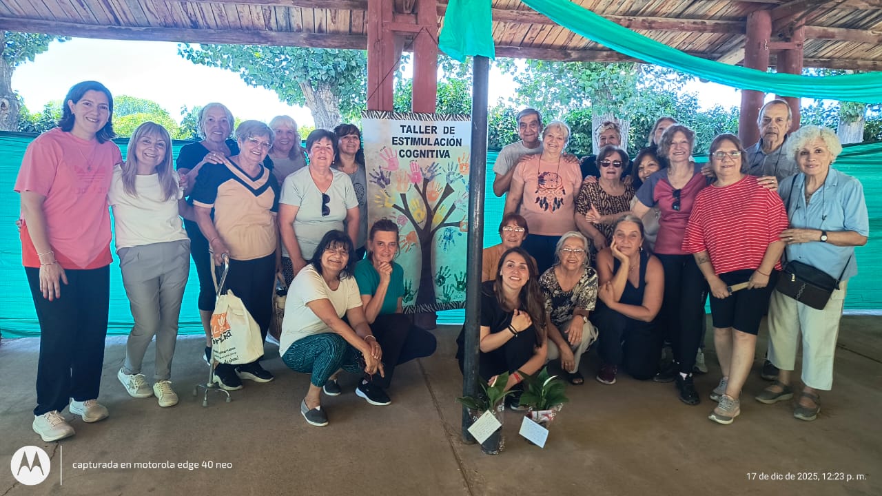 Alrededor de 20 adultos mayores participaron del cierre anual del Taller de Estimulación Cognitiva, que se llevó a cabo en el Parque Dueño del Sol, en Junín. El encuentro reunió a quienes asistieron durante el año al espacio coordinado por la doctora Eugenia Barrozo y la licenciada Natalia Frías.