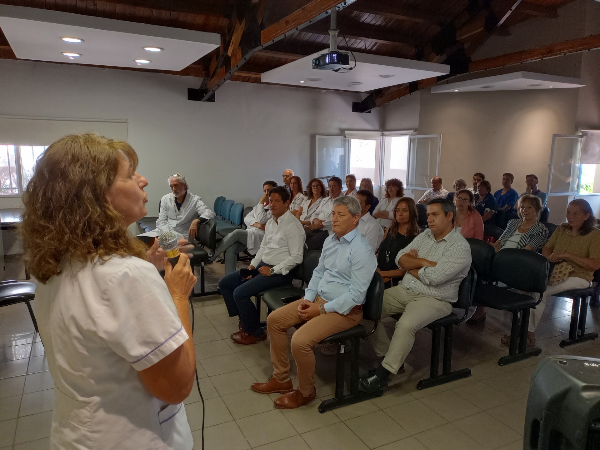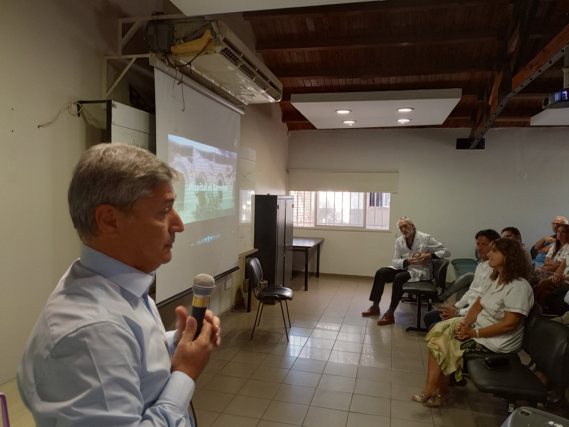 En el acto conmemorativo por los 124 años del Hospital El Carmen estuvieron presentes el intendente de Godoy Cruz, Diego Costarelli; el director de OSEP, Carlos Funes; el director de atención a la Salud de la Obra Social, Sergio Benítez; los directivos del Hospital El Carmen, Silvia Santaella y Mario Nacussi; los directivos del Hospital Fleming, Mauricio Recabarren y Silvana Nadal y por la familia Pescara-Tomba, la Señora Estela Farías de Tomba.