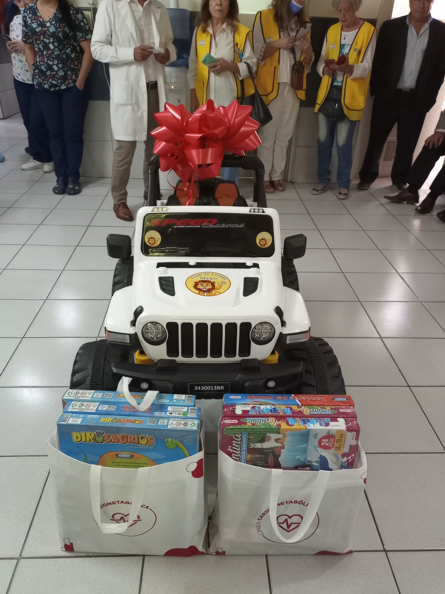El Hospital Pediátrico Alexander Fleming recibió una significativa donación por parte del Club de Leones de Maipú. Se trata de un vehículo Jeep 4×4 infantil, con capacidad para 37 kilogramos, a control remoto, para los niños y niñas que se encuentran internados en el nosocomio y reciben tratamientos invasivos para su salud.