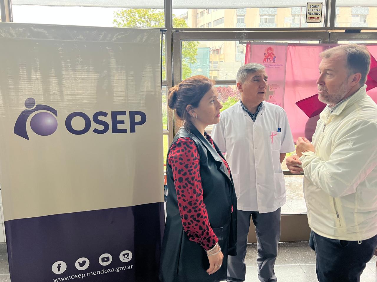 OSEP celebra a pleno las actividades por el Mes de la Lucha y Prevención del Cáncer de Mama en el Departamento de San Rafael. Las acciones, realizadas en colaboración con el Hospital Teodoro Schestakow, Cruz Roja y el Área Sanitaria de San Rafael, continuaron hoy en el nosocomio del sur provincial, donde se llevó a cabo una intervención a cargo de médicos especialistas.