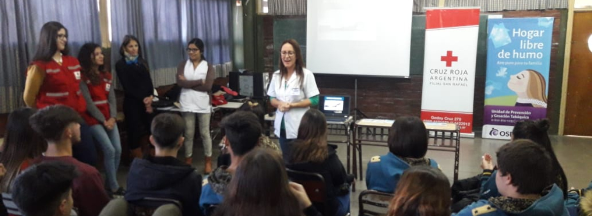 La Unidad de Prevención y Cesación Tabáquica de OSEP brindó una charla educativa en la Escuela 4-087 “Colegio Nacional”, de San Rafael. Participaron de la actividad alumnos de 5º año, profesores de la institución y profesionales de la Cruz Roja, con la finalidad de que los adolescentes tomen conciencia sobre las consecuencias de fumar.