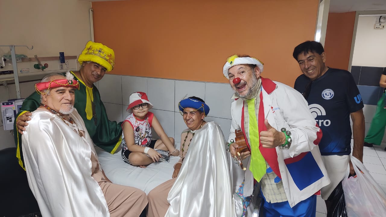 Llegaron ya, los reyes eran tres… Melchor, Gaspar y Baltasar estuvieron en el Hospital Fleming repartiendo juguetes, sonrisas y alegría a los niños que se encuentran internados. Fueron acompañados por el doctor Sergio Benítez, director de Atención a la Salud de OSEP y el doctor Mauricio Recabarren, director del Hospital junto a Musicón, animador sociocultural de la Obra Social.