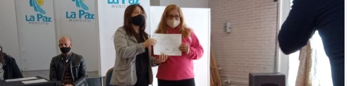 26 cuidadores domiciliarios recibieron los diplomas que acreditan la aprobación del Curso de Formación de Cuidados Domiciliarios, auspiciado en el marco del Programa Nacional de Cuidados Domiciliarios de la Dirección Nacional de Políticas para Adultos Mayores (DINAPAM) y realizado por la Dirección de Adultos Mayores de la Provincia de Mendoza, Delegación La Paz.
