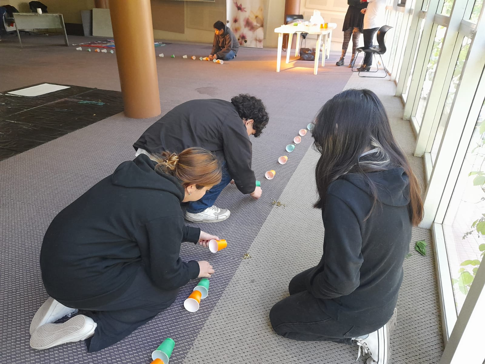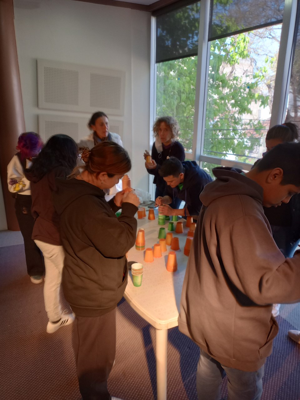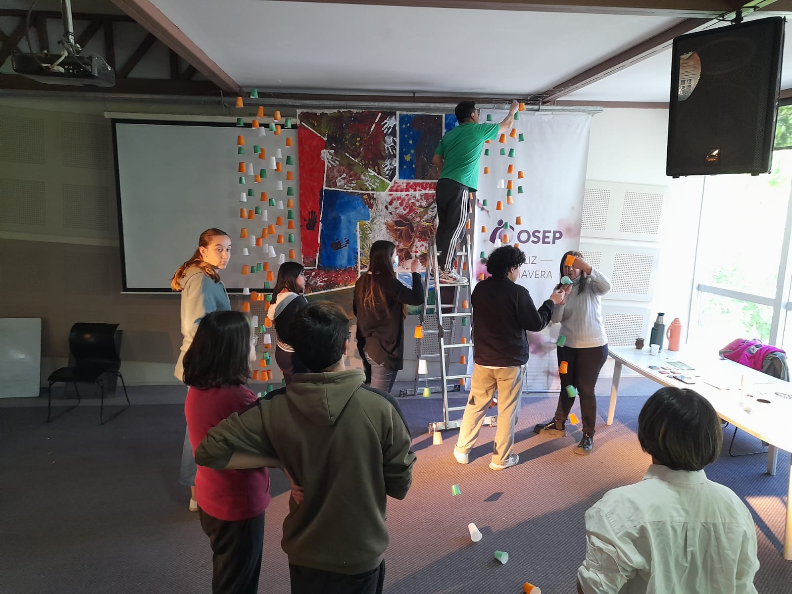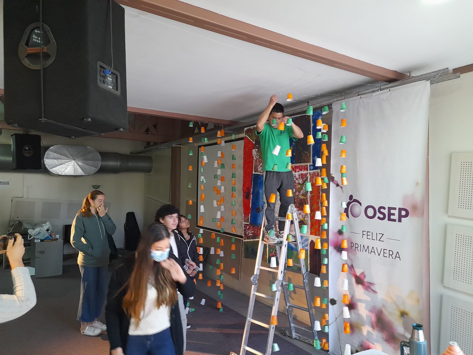 Luego, junto al profesor Lucas Millán, artista plástico, trabajaron toda la semana y, ayer, expusieron la finalización de un mural y una estructura realizada con vasos, envases descartables y material reciclable. Ambas obras quedarán expuestas en los edificios de la institución.