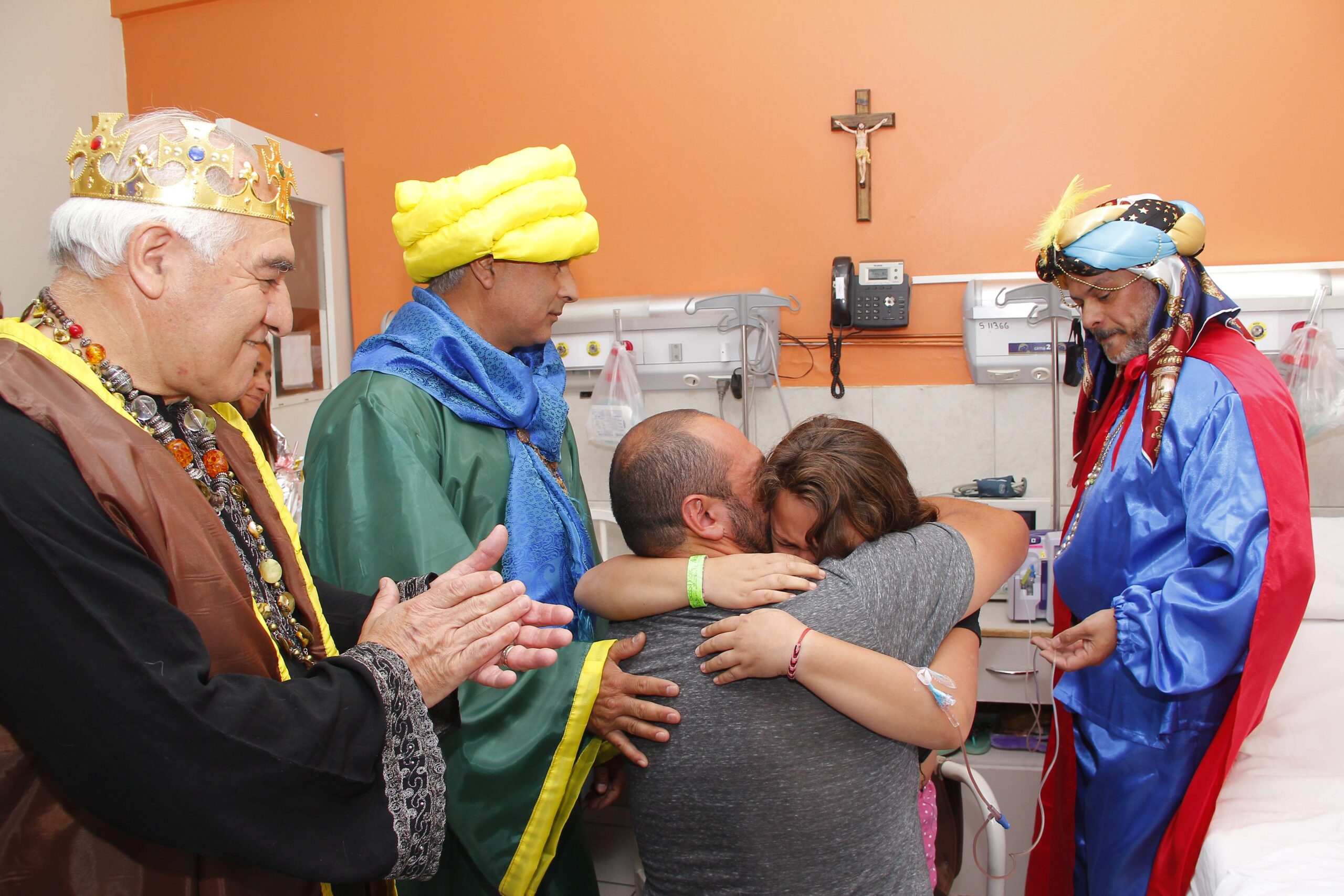 Jorge Martínez, Ángel Vergara y Rolando Castro, jefe de Enfermería de Guardia, camillero y personal de Seguridad caracterizaron a los queridos Reyes Magos. Y sus trajes fueron confeccionados por Verónica Zubieta, enfermera de Guardia y Johana Quiroga, personal del Área de Limpieza.