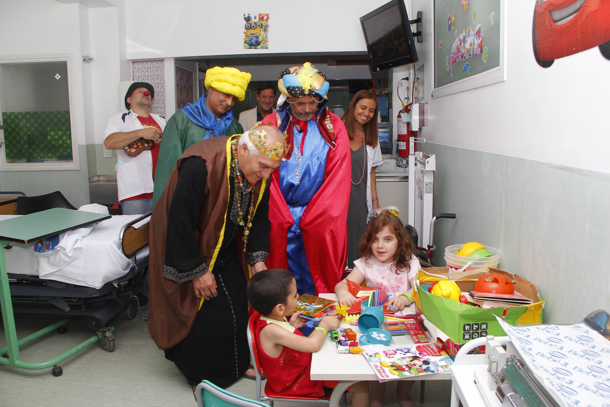 Melchor, Gaspar y Baltasar recorrieron el Hospital Fleming entregando juguetes y sonrisas a los niños y niñas internados. Los Reyes Magos estuvieron acompañados por el doctor Sergio Benítez, director de Atención a la Salud de OSEP; la doctora Silvana Nadal, directora Asistencial del nosocomio y Musicón, del grupo animadores socioculturales “Emergencias de Sonrisas”.