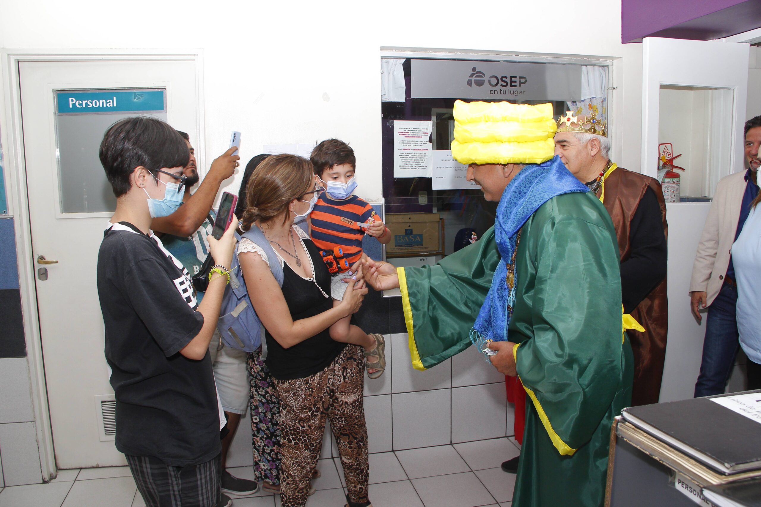 Jorge Martínez, Ángel Vergara y Rolando Castro, jefe de Enfermería de Guardia, camillero y personal de Seguridad caracterizaron a los queridos Reyes Magos. Y sus trajes fueron confeccionados por Verónica Zubieta, enfermera de Guardia y Johana Quiroga, personal del Área de Limpieza.