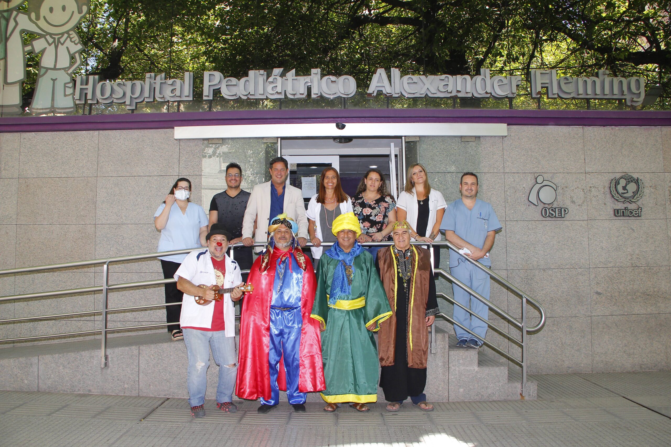 Melchor, Gaspar y Baltasar recorrieron el Hospital Fleming entregando juguetes y sonrisas a los niños y niñas internados. Los Reyes Magos estuvieron acompañados por el doctor Sergio Benítez, director de Atención a la Salud de OSEP; la doctora Silvana Nadal, directora Asistencial del nosocomio y Musicón, del grupo animadores socioculturales “Emergencias de Sonrisas”.