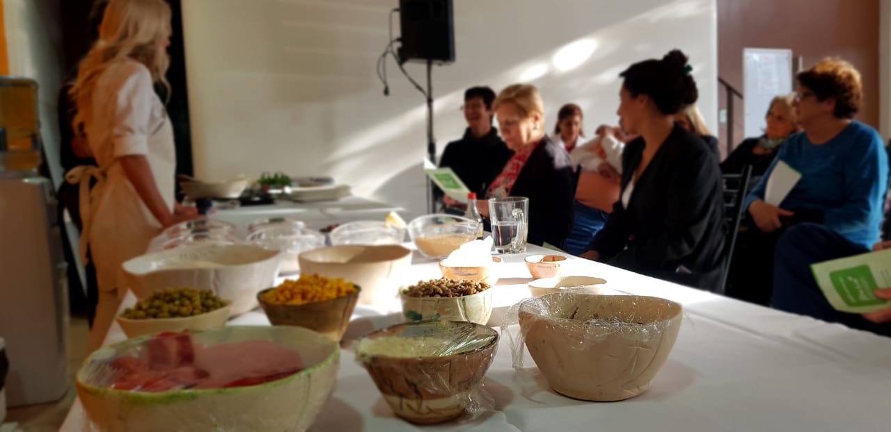 María comenzó su clase haciendo participar al público, conociendo sus gustos y expectativas. Remarcó que volver a la saludable es de alguna manera volver a la comida casera sabiendo hacer elecciones que beneficien nuestro organismo.