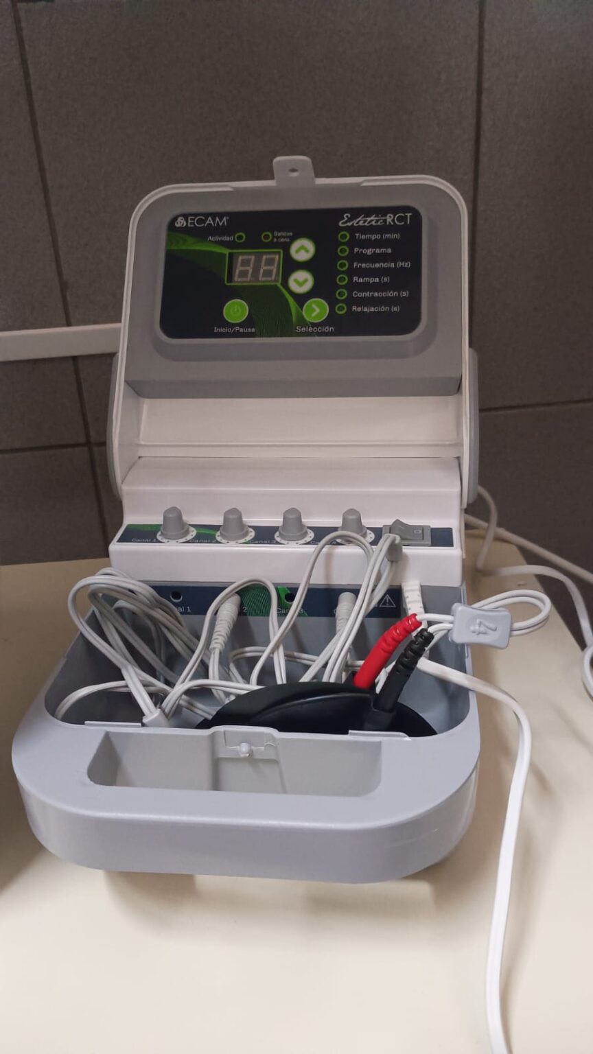 Uno de los dispositivos adquiridos es un equipo de Ultrasonido Dual, que cuenta con doble frecuencia, con cabezales de 1 MHz y de 3 MHz, 25 programas, control automático de temperatura y emisión continua o pulsada.