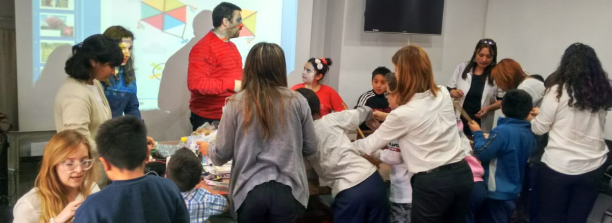 Quien también se sumó a los festejos fue el equipo de Salud Mental del Hospital Pediátrico Alexander Fleming. Profesionales y niños se unieron en una verdadera jornada de alegría en el marco del Taller de Cuentos. Jugaron con globos de colores, participaron de la lectura de un cuento sobre barriletes y finalizaron fabricando el suyo. Además compartieron una merienda saludable.