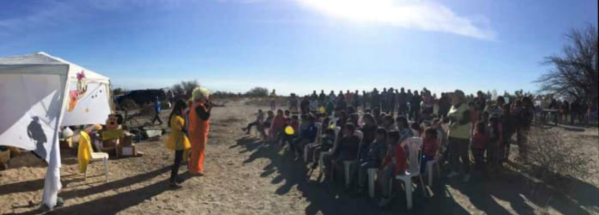 Las actividades comenzaron a principio de este mes, cuando los “profe” visitaron la Comunidad Sawa, descendientes de Huarpes, en Lagunas del Rosario, departamento de Lavalle. Allí a los obsequios se sumó ropa y alimentos para las familias que enfrentan el desierto día a día.