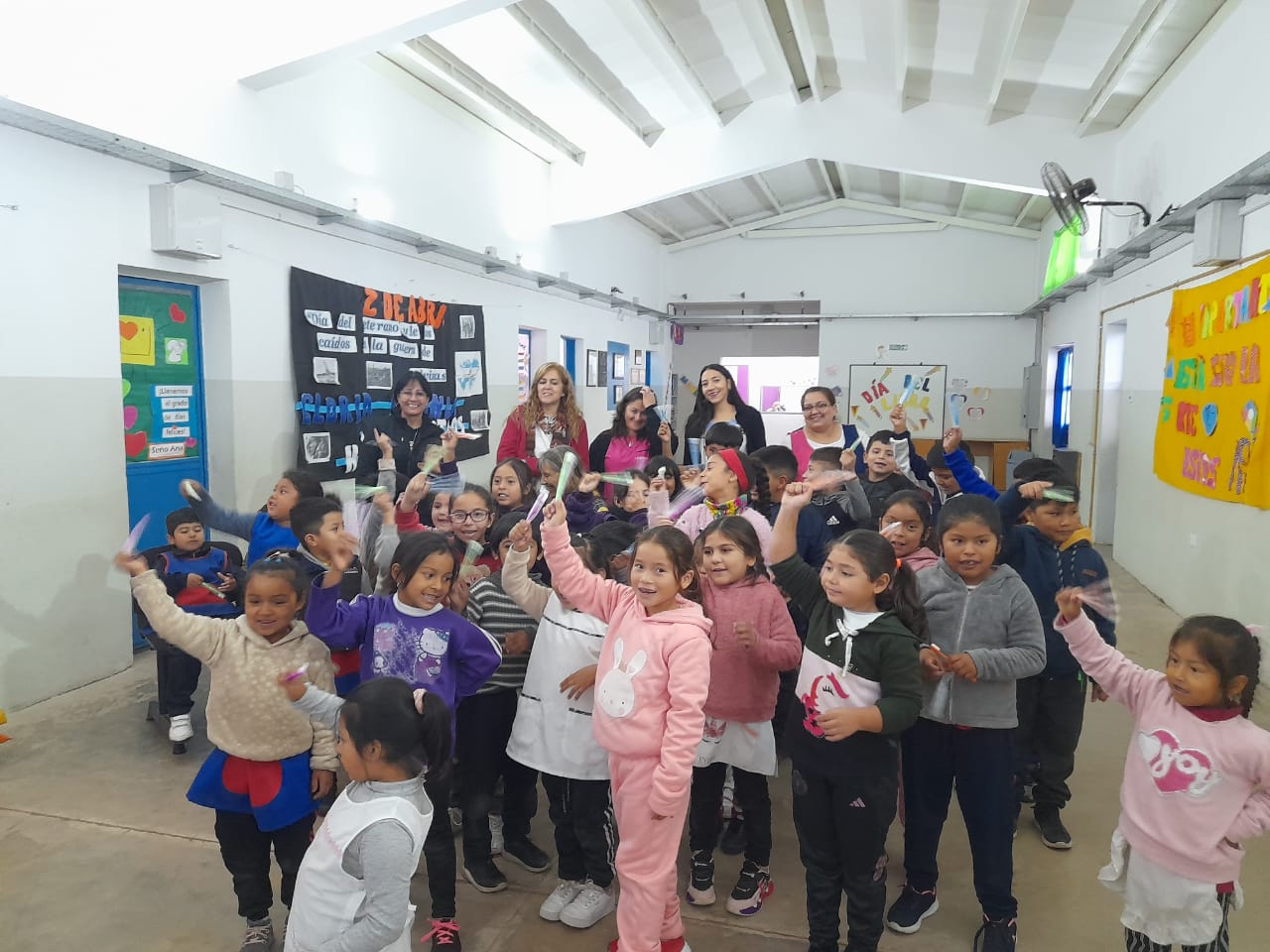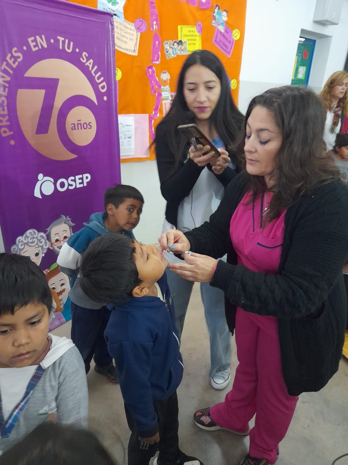 Profesionales de OSEP Lavalle realizaron actividades de concientización sobre salud bucal en la escuela primaria 1-281 Simón Chaves, del distrito de El Vergel, Lavalle.