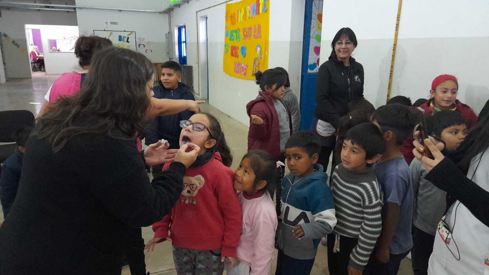 Se trata de 100 alumnos que asisten a jardín de infantes y primer grado, a quienes además se les realizó controles de detección de placa bacteriana y se les entregaron cepillos y pasta dental, con el objetivo de fomentar la correcta higiene bucal como método de prevención de enfermedades.