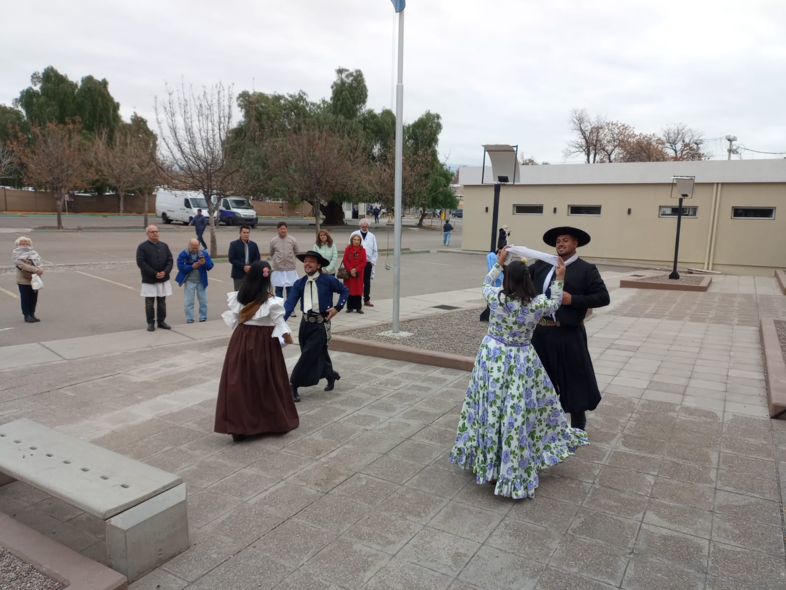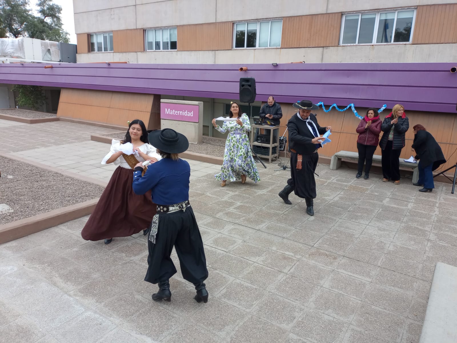 Los presentes se congregaron en la explanada de la Maternidad Misericordia, Salta y Groussac, donde entonaron las estrofas del Himno Nacional y disfrutaron de cuecas y gatos a cargo de los bailarines.