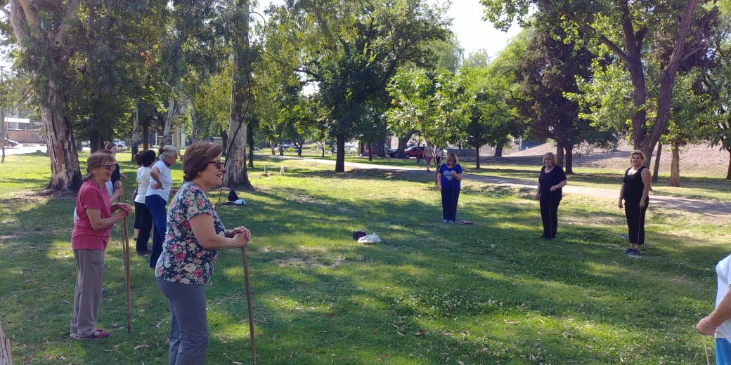Un grupo de adultos mayores que realizan actividad física en Guaymallén hizo un recorrido saludable por el espacio verde del Acceso Este. Partieron de Villa Nueva y finalizaron en la Estación Saludable.