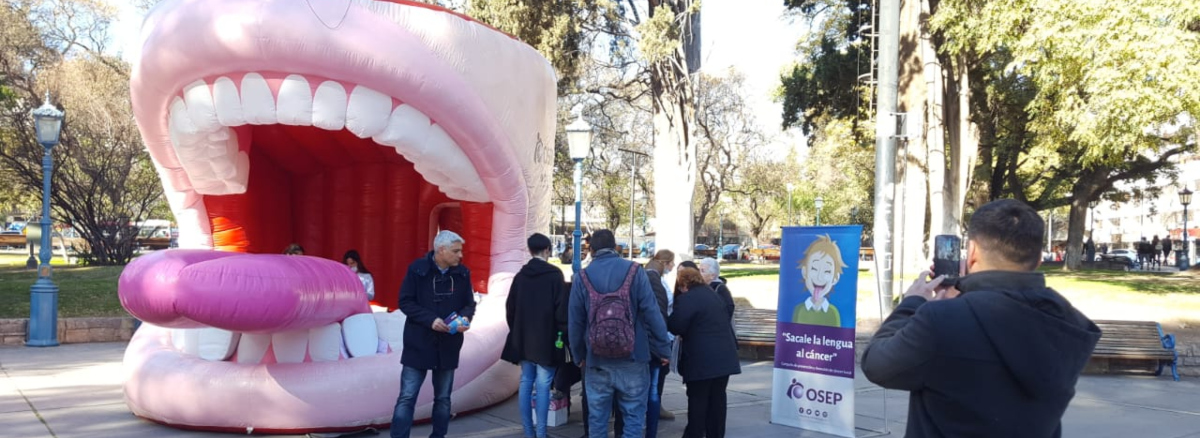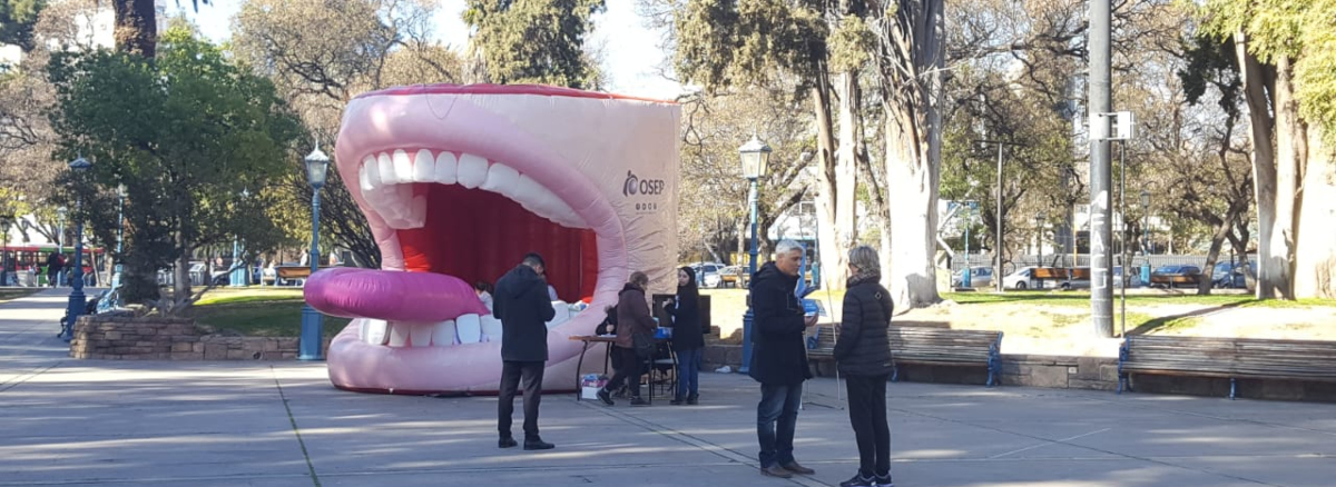Más de 200 personas pasaron por el stand ubicado en la Plaza Independencia para prevenir el cáncer bucal y conocer la Boca Gigante de OSEP. Los profesionales del Centro Odontológico continuarán con esta iniciativa en diferentes puntos de la provincia.