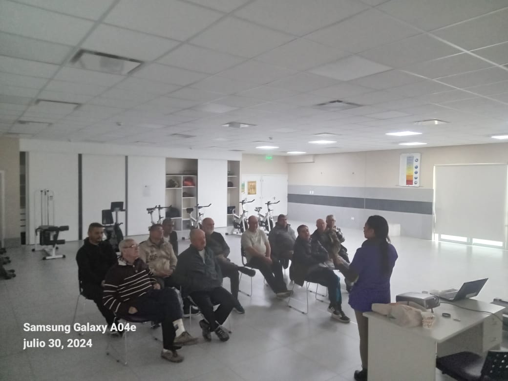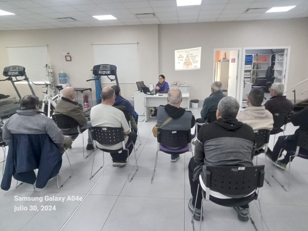 La mañana comenzó con una actividad programada. Se trata del Taller de Nutrición dirigido al grupo de rehabilitación cardíaca. La charla fue brindada por los licenciados Alicia García, Ángel García y Victoria Claros; especialistas en Nutrición, Educación Física y Enfermería respectivamente. Allí, los pacientes aprovecharon un espacio propicio para despejar todas sus dudas con los profesionales.