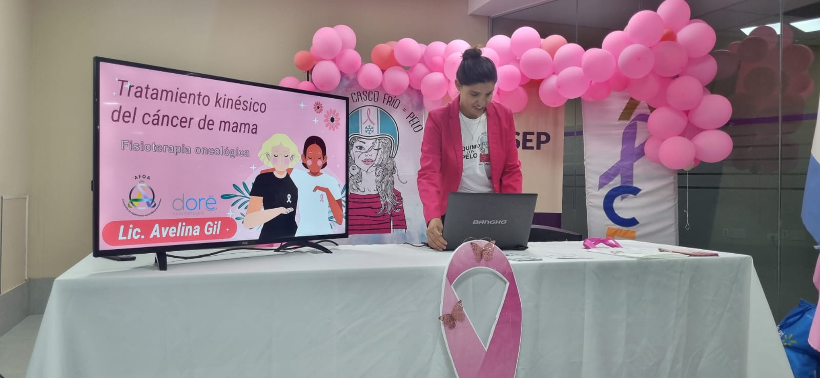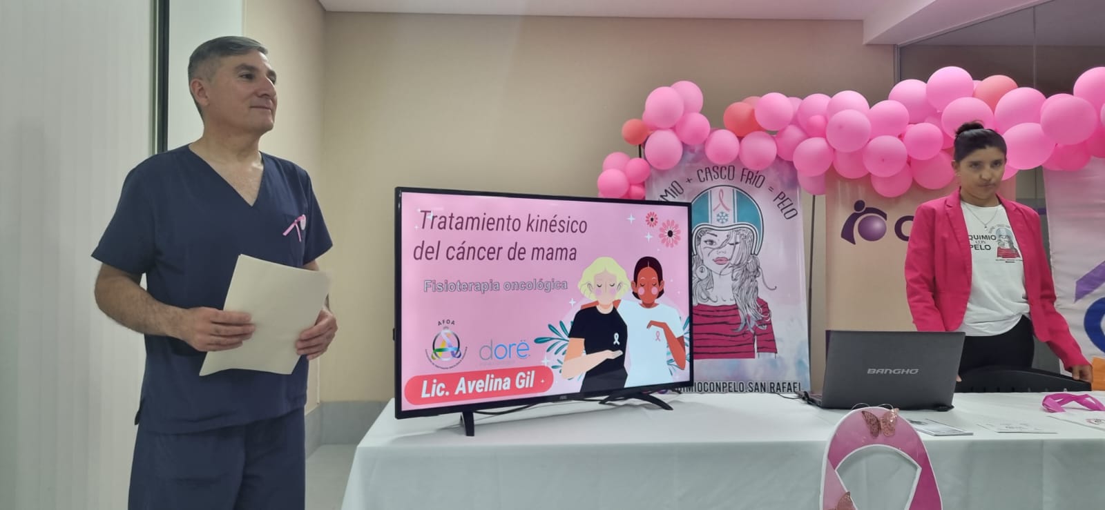 Durante la jornada de hoy, se llevó a cabo un encuentro con la reconocida kinesióloga especializada en la patología, Avelina Gil. La profesional ofreció una completa exposición sobre el tratamiento pre y posquirúrgico en un evento que se desarrolló en el edificio de Entre Ríos 345, San Rafael. Al finalizar, se presentaron testimonios y “Cascos Fríos”, un proyecto solidario que acompaña a las pacientes en tratamiento de quimioterapia con el fin de evitar la caída del cabello.