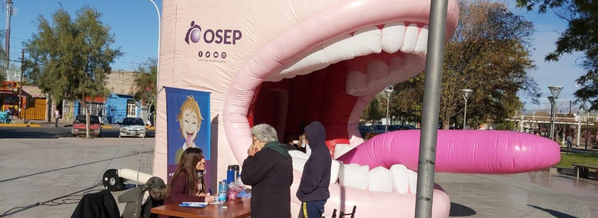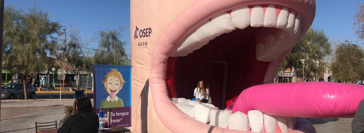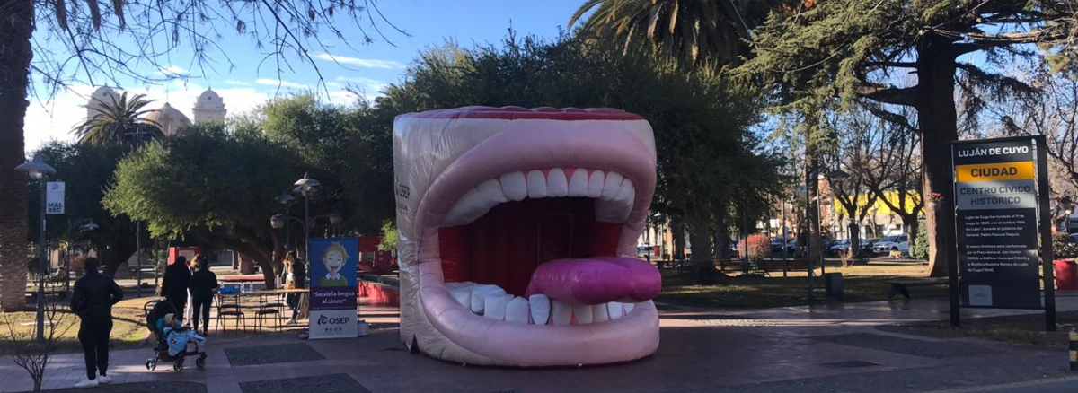 Los odontólogos de OSEP se instalaron con la Boca Gigante en las plazas departamentales de Lavalle y Luján de Cuyo en el marco de la Campaña Nacional de Detección y Prevención de Cáncer Bucal. Mañana será el cierre de “Sacale la lengua al cáncer” en el Hospital El Carmen, de 9 a 13.