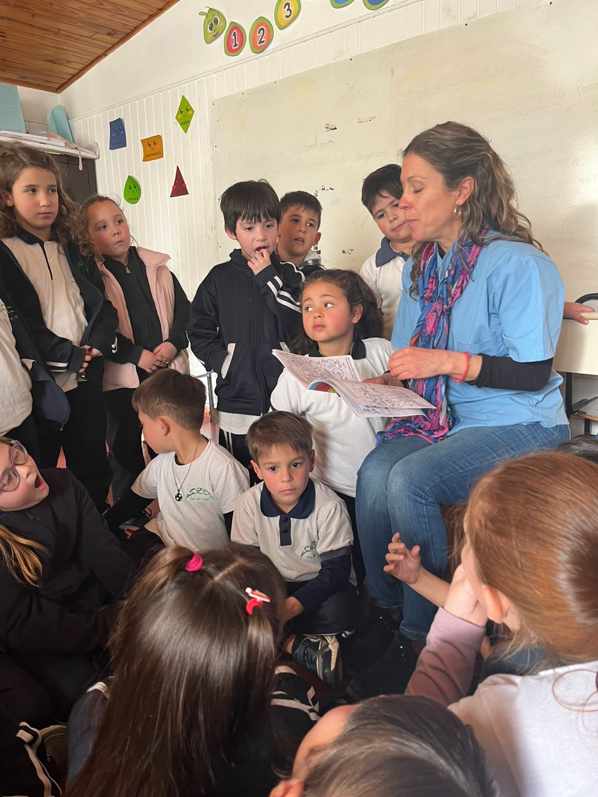 La primera visita fue a la Escuela República de Siria, donde se desarrolló un taller literario con estudiantes de primer grado. En la ocasión se narró el cuento “El arcoíris de las verduras” y, posteriormente, cada niño sembró hortalizas en una maceta, poniendo en práctica lo aprendido.