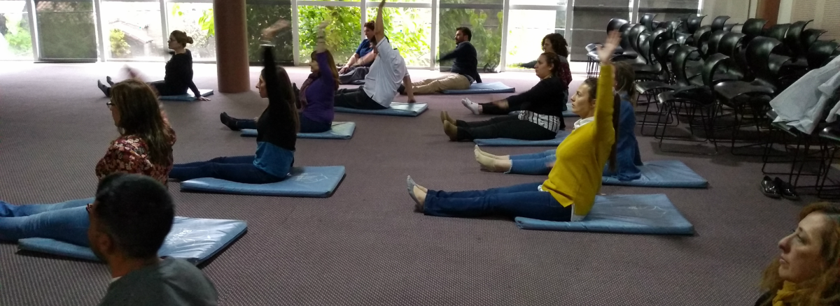 En la ocasión, un grupo de 20 trabajadores asistió a una clase de Gimnasia Postural, a cargo del profesor de Educación Física Darío Toledano, del programa Salud + Recreación.