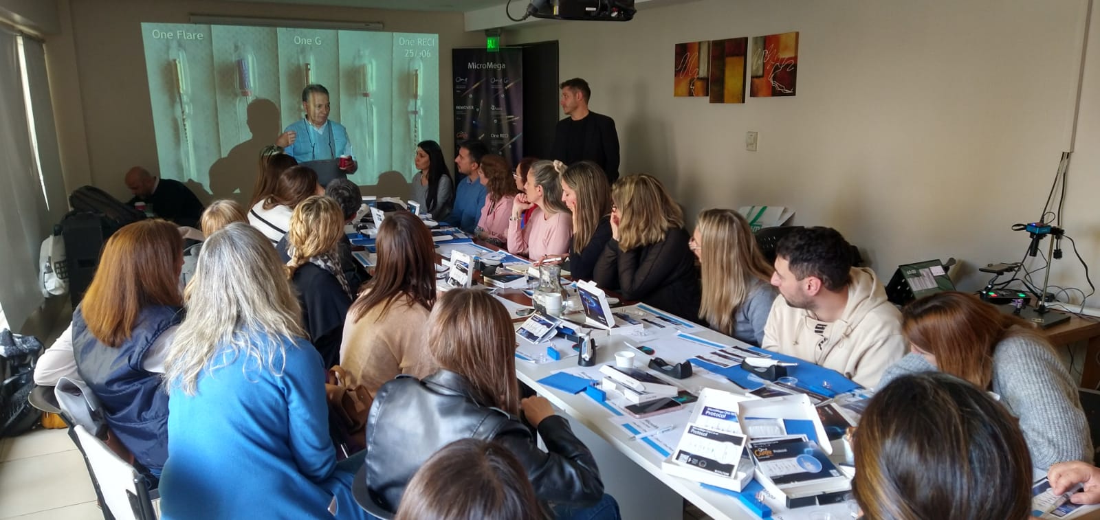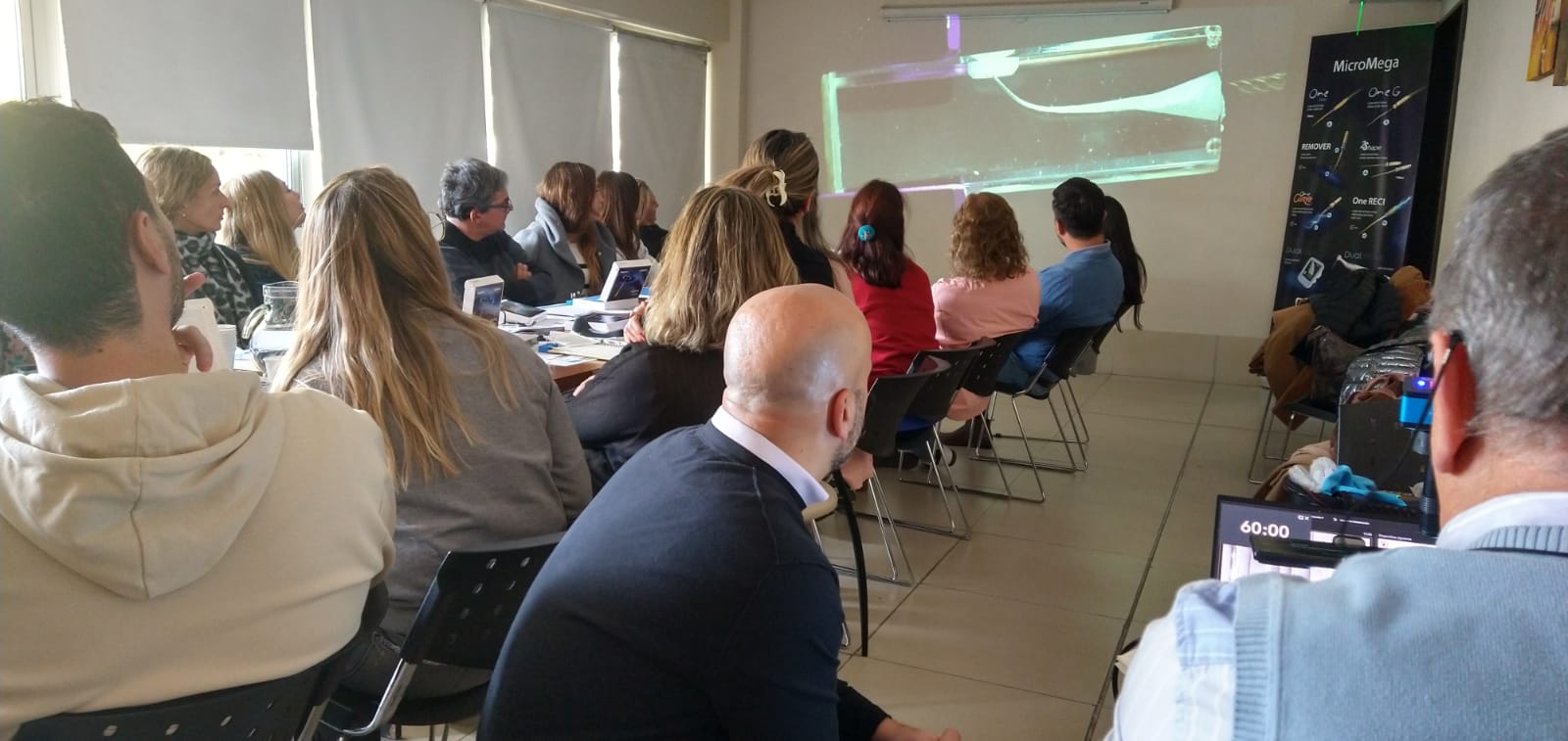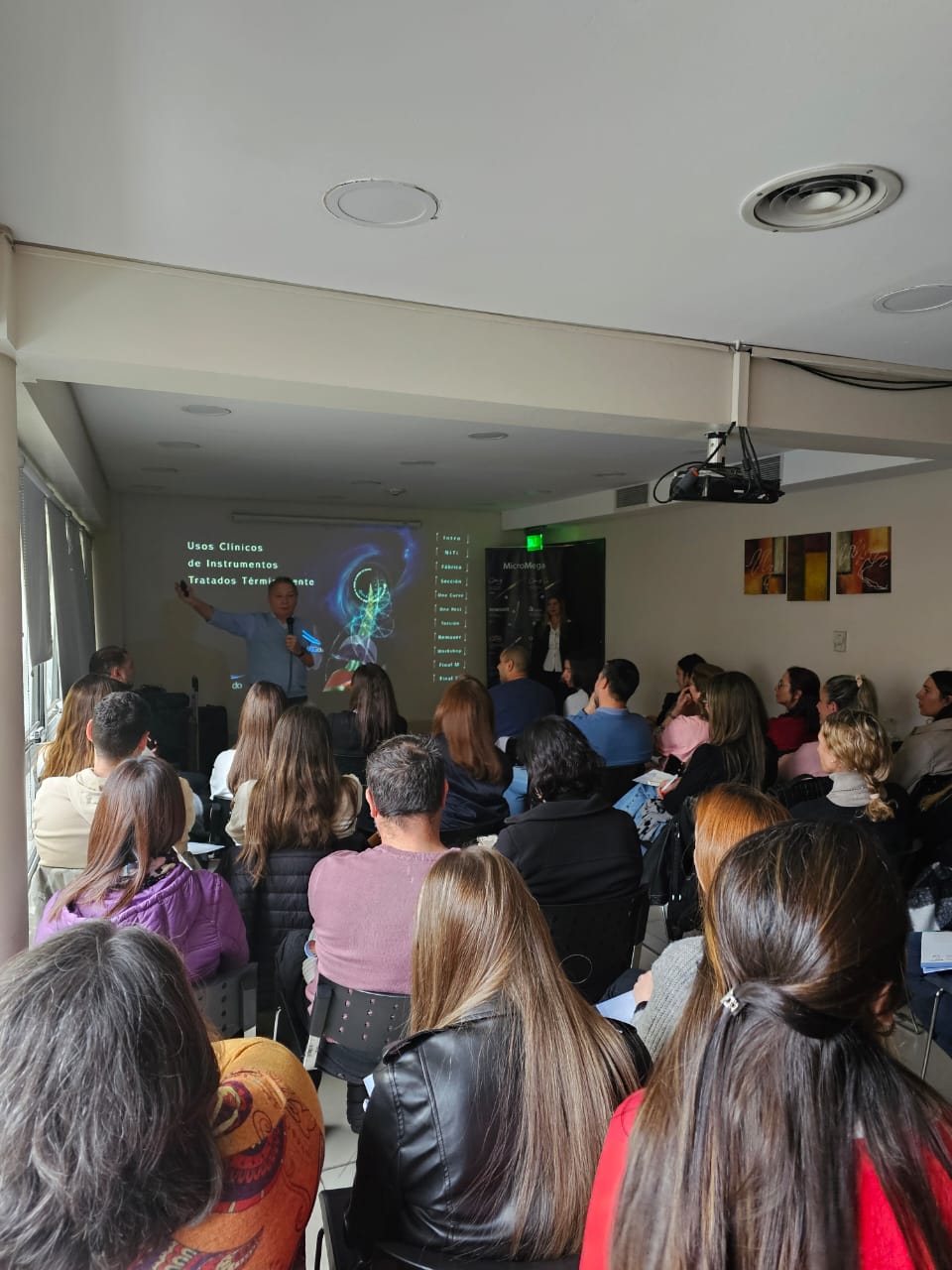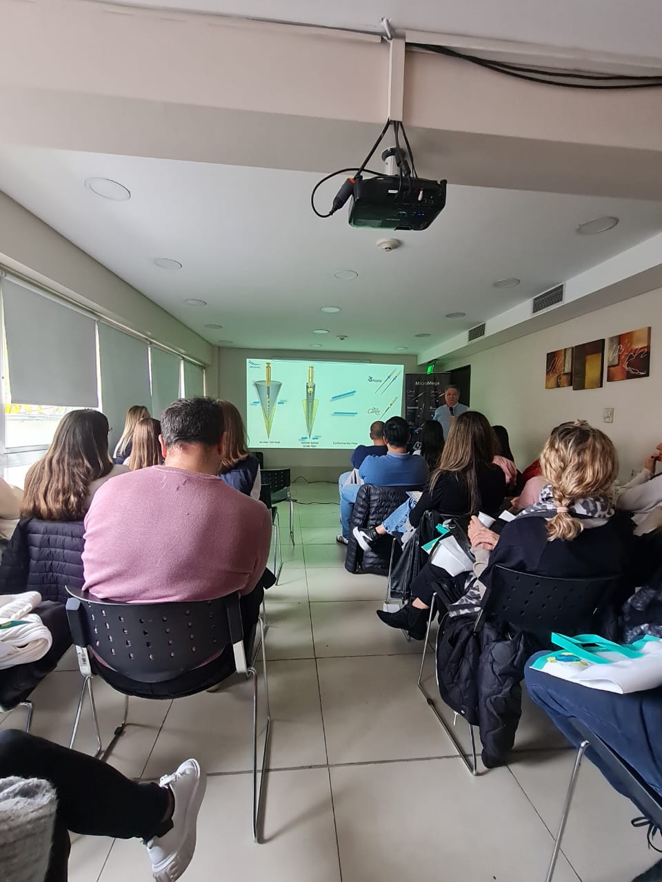 Durante la primer parte del encuentro se realizó una charla, con más de 40 profesionales, que abordó los usos clínicos de instrumentos mecanizados de giro continuo y reciprocante tratados térmicamente.