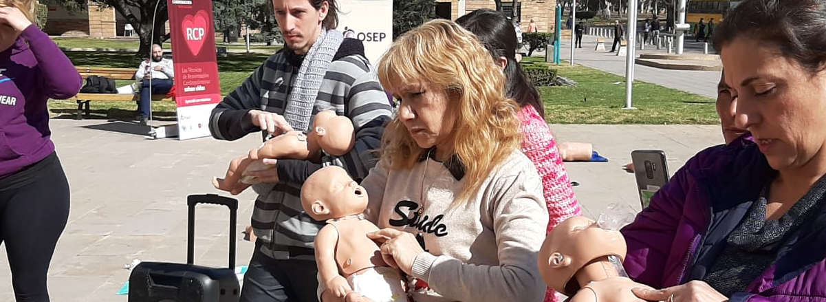 Con el apoyo del Ministerio de Salud, Desarollo Social y Deportes y la SATI (Sociedad Argentina de Terapia Intensiva) desde las 9 horas, profesionales médicos y enfermeros se instalaron en la explanada de la Casa de Gobierno para enseñar primeros auxilios y así aprender a asegurar la cadena de supervivencia.