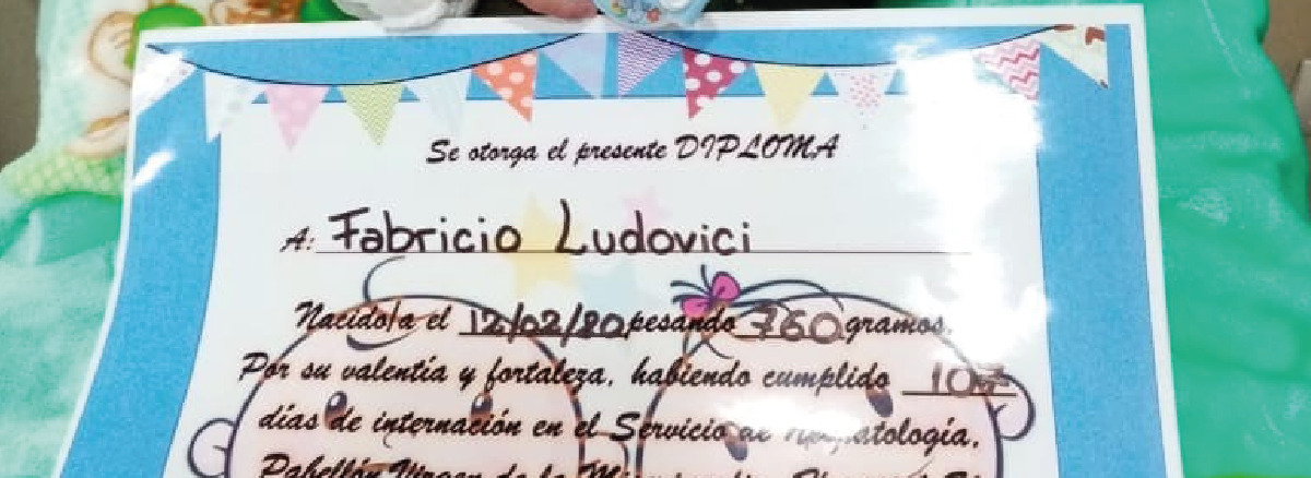 Se trata de Fabrizio, bebé de 4 meses que recibió su alta con excelentes números: pesó 760 gramos al nacer y “egresó” de la maternidad para irse a casa con 2,620 kilogramos. Tras 107 días de estar en Neonatología médicos, enfermeras y personal de OSEP, en un pequeño homenaje, entregaron un diploma simbólico al pequeño para que disfrute su vida en casa.