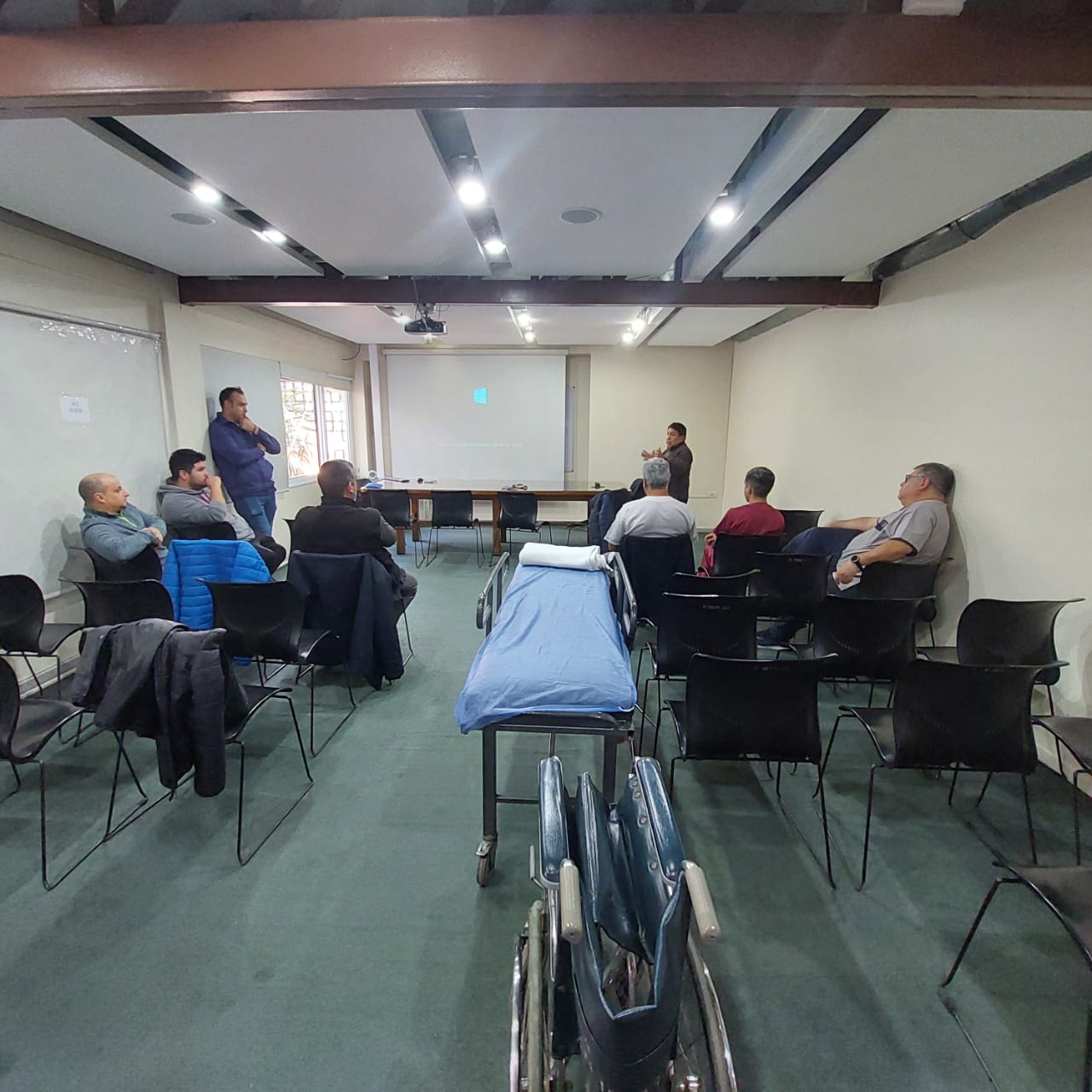 Profesionales de los departamentos de Higiene y Seguridad y de Educación Física de OSEP compartieron una jornada con los camilleros del Hospital Fleming donde se generó un intercambio entre los equipos, con el objetivo de promover una postura saludable y planificar tareas de forma adecuada y segura.