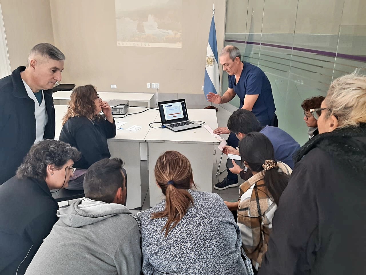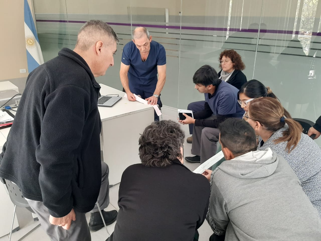 Respecto al Taller de Electrocardiograma para Enfermeros, se trató de un espacio formativo que tuvo lugar en el SUM de la Sede Territorial situada en Entre Ríos 345. El encargado de la capacitación fue el licenciado Darío Saromé, jefe del servicio de Enfermería y el objetivo de la charla fue mejorar las competencias de la enfermería en la interpretación de electrocardiogramas, así como también fortalecer habilidades y conocimientos sobre la fisiología cardíaca; la correcta colocación de los electrodos y la interpretación básica de las diferentes ondas y segmentos del electrocardiograma e identificar las arritmias más comunes y sus implicancias clínicas.