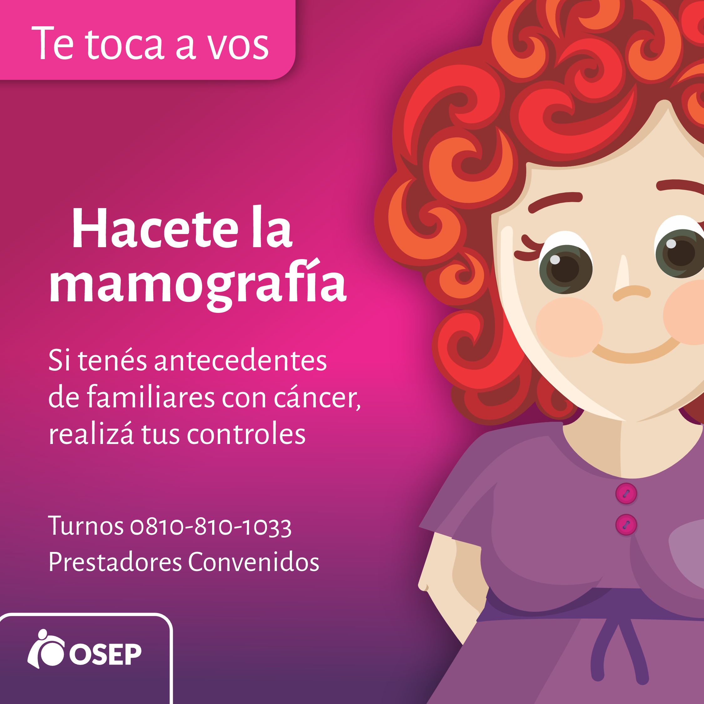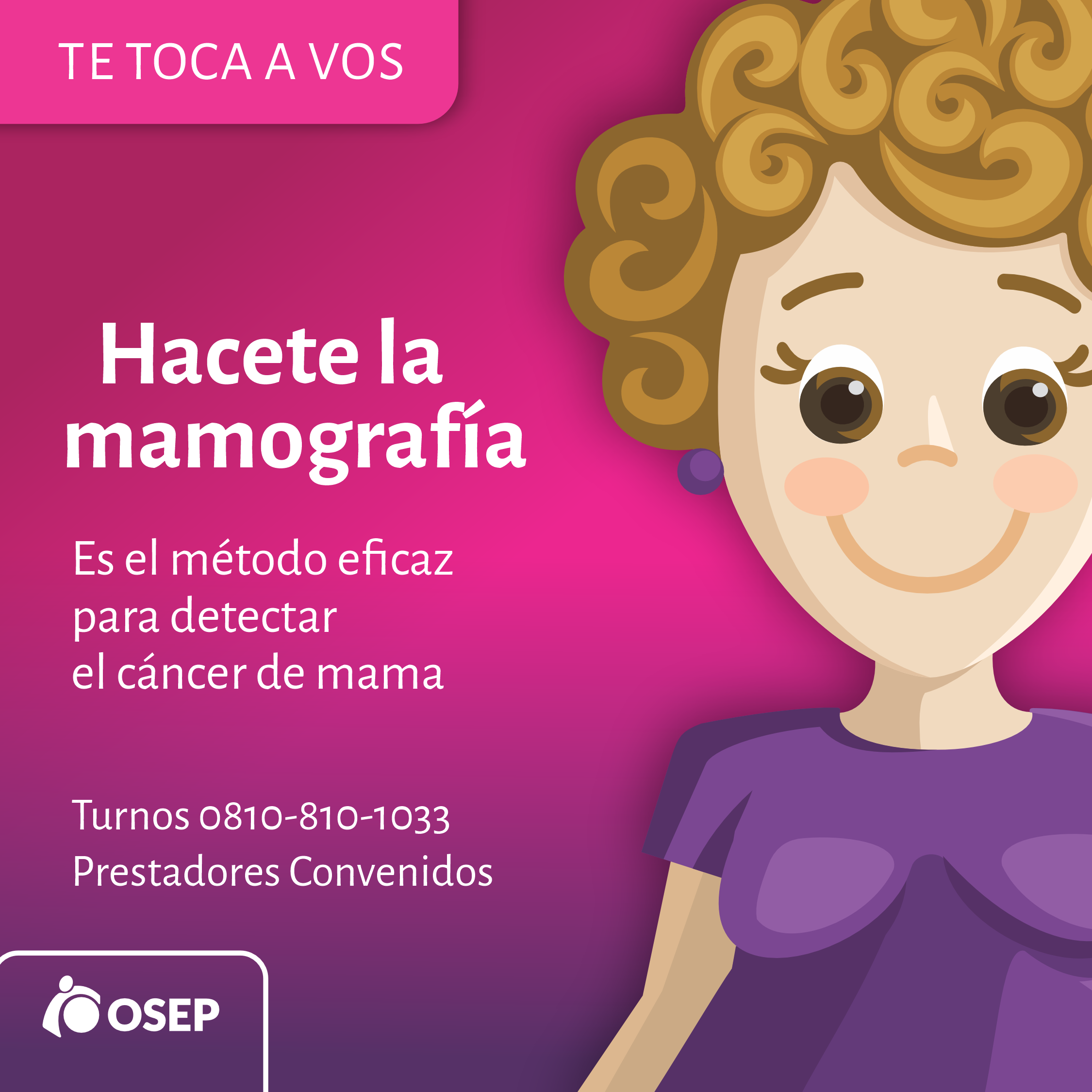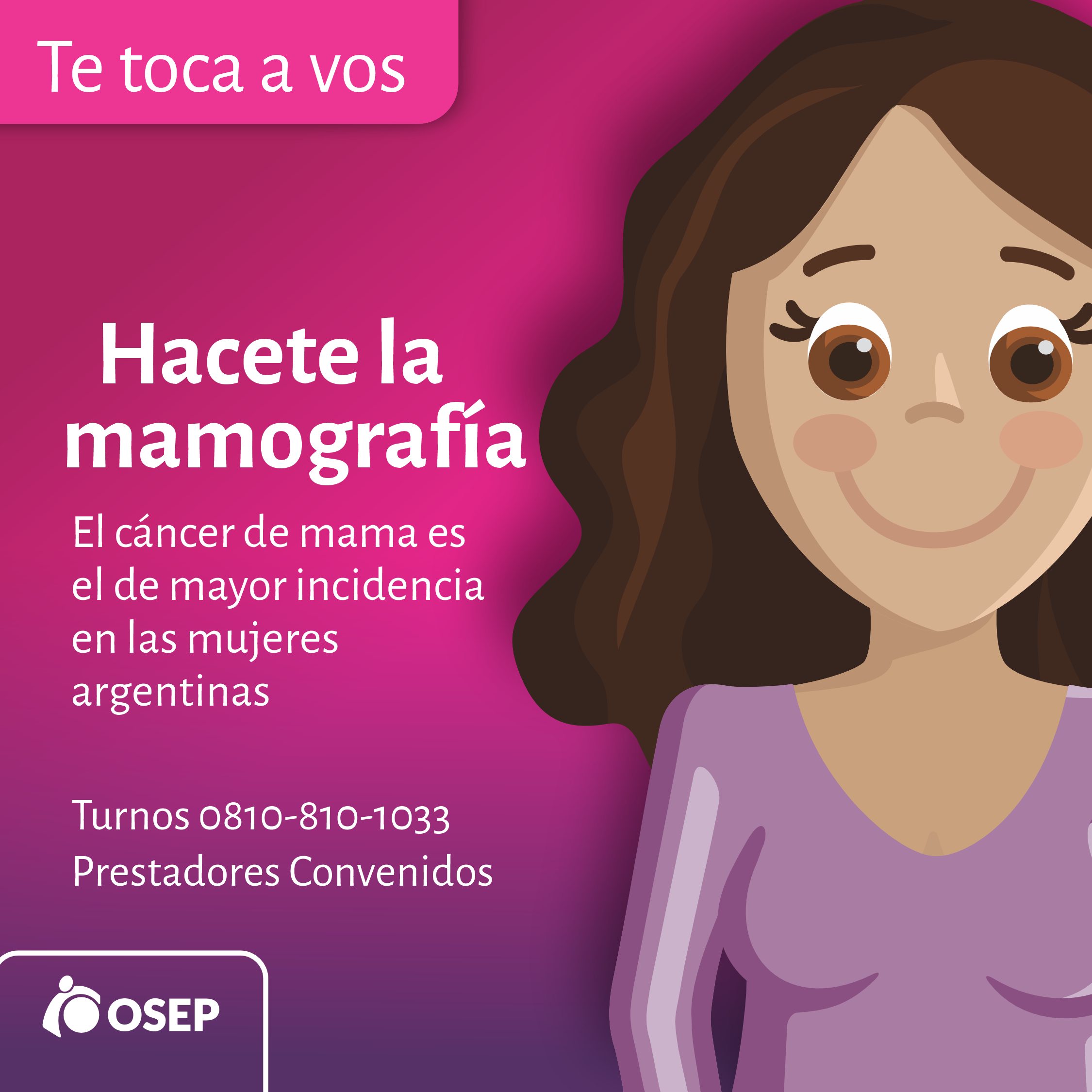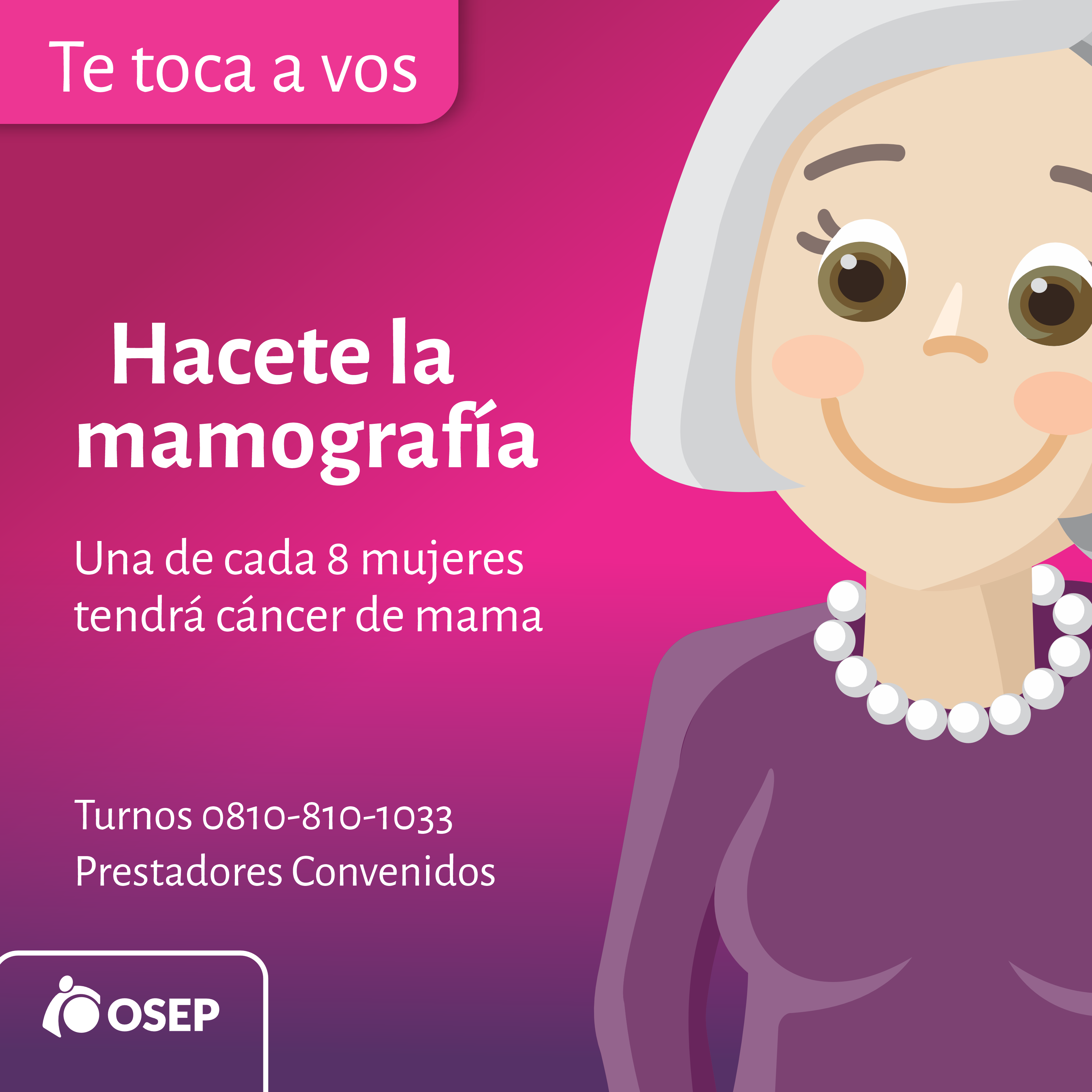 “TE TOCA A VOS, hacete la mamografía” es el mensaje con el que llevarán a cabo la campaña tanto la Línea de Cuidado de Salud Sexual y Reproductiva como Sedes y efectores de OSEP.