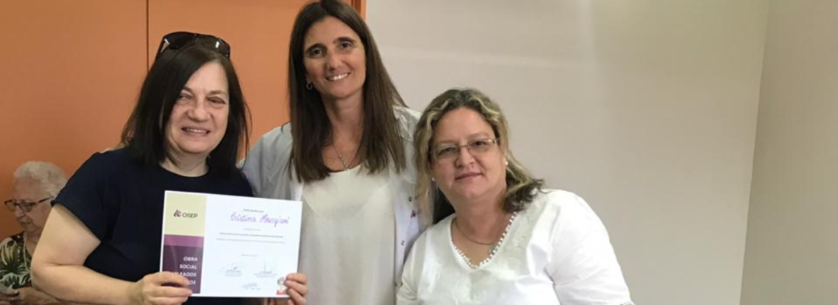 El taller de la Memoria es dictado por un equipo interdisciplinario de profesionales y hoy contó con la presencia de la doctora Paula Fachinelli, coordinadora del taller, la licenciada Ana Notti y la diseñadora Viviana Casaño.