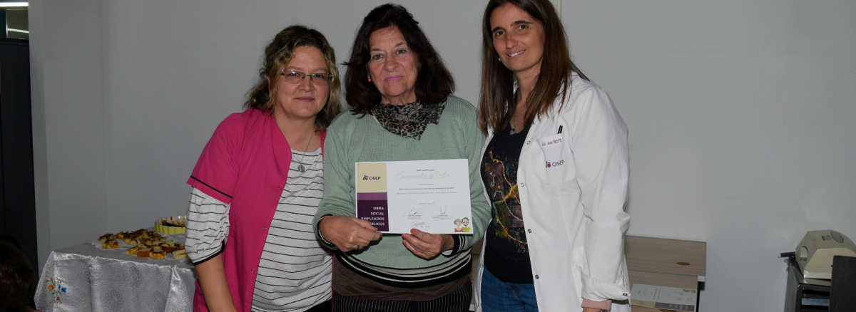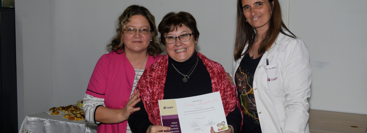 Cabe destacar que los certificados fueron entregados por las licenciadas Viviana Lasagni, Ana Notti y la doctora Paula Fachinelli; quienes reconocieron a todos los presentes: Teresa Ochoa, Susana Appiolaza, Estela Calle, José Luis Mikalet; Jorge Flores, Lilia Medaura, Marta Cremaschi, Beba Ávila, Ángela Velasco, Briyt Tobar y Ethel Walter.