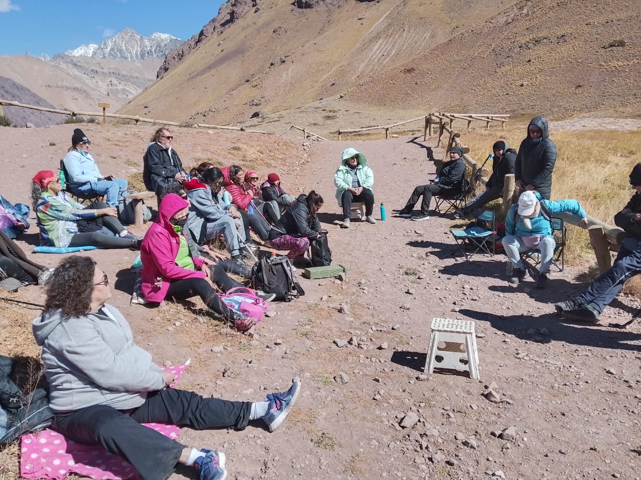A pesar de las ráfagas de viento, el sol acompañó toda la actividad, brindando un clima ideal para disfrutar de la belleza de la Laguna de Horcones y el contacto con la naturaleza.